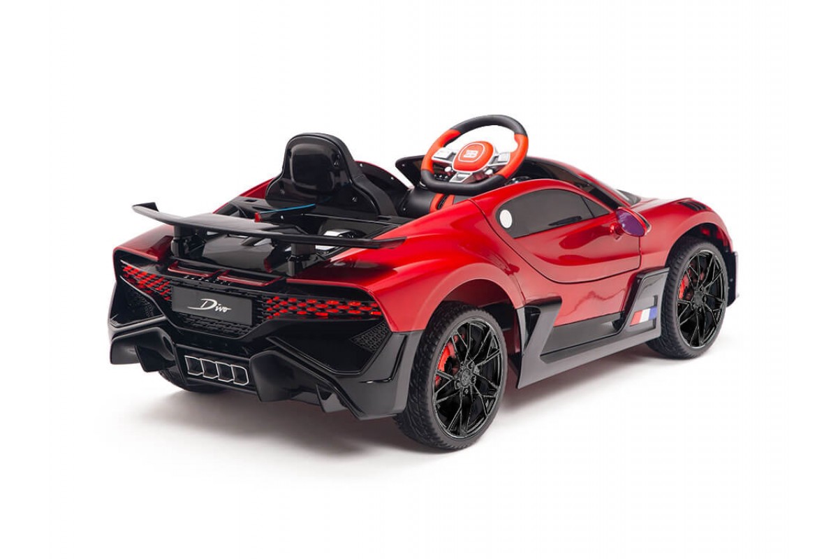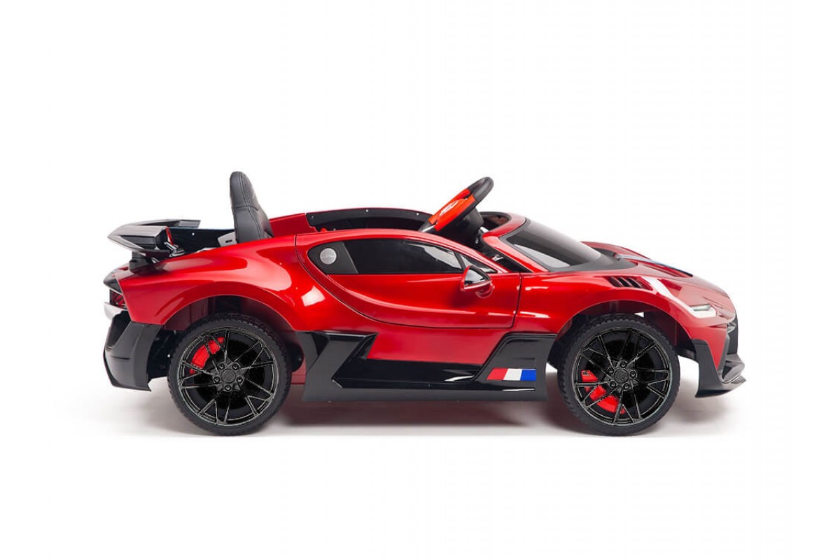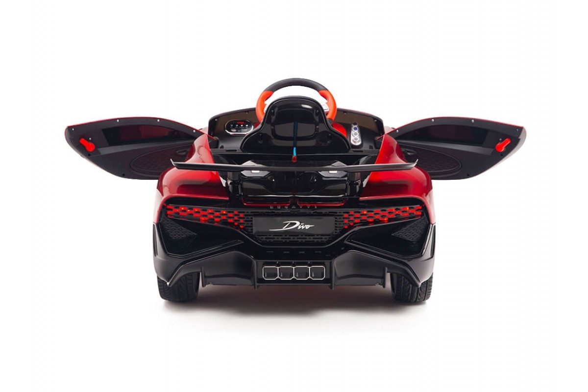 Детский электромобиль Bugatti Divo 12V - RED - HL338 - это детский одноместный электромобиль Bugatti Divo по лицензии известного автоконцерна выполнен по стилю легендарной спортивной версии Bugatti. Двухскоростной автомобиль с пультом радиоуправления, у него открываются боковые двери и багажник. Отличие этой модели от других – мягкие резиновые колеса, встроенная магнитола, LEВ подсветка фар и звук мотора, сиденье из перфорированной черной экокожи с логотипом и пульт управления 2.4G.