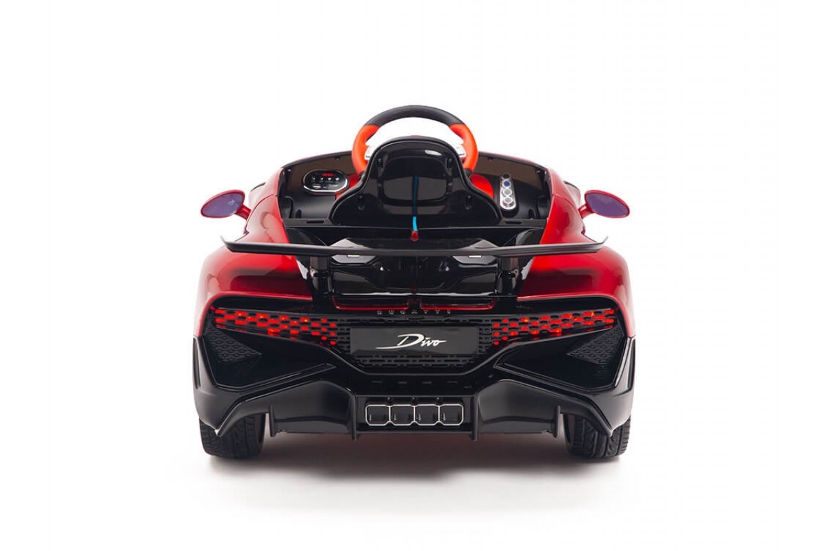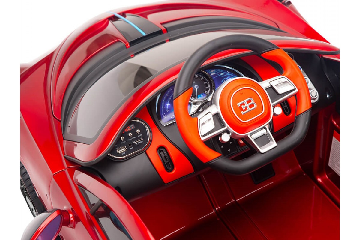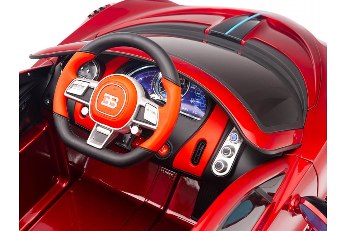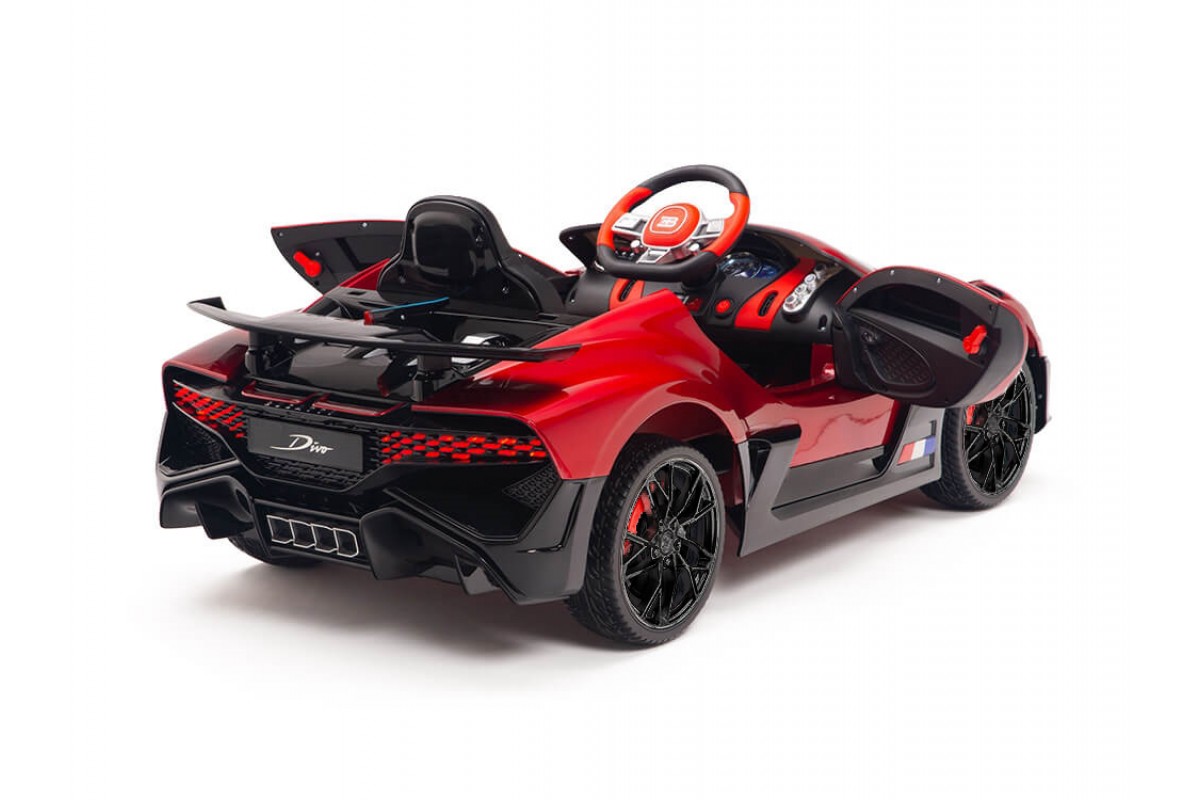 Детский электромобиль Bugatti Divo 12V - RED - HL338 - это детский одноместный электромобиль Bugatti Divo по лицензии известного автоконцерна выполнен по стилю легендарной спортивной версии Bugatti. Двухскоростной автомобиль с пультом радиоуправления, у него открываются боковые двери и багажник. Отличие этой модели от других – мягкие резиновые колеса, встроенная магнитола, LEВ подсветка фар и звук мотора, сиденье из перфорированной черной экокожи с логотипом и пульт управления 2.4G.