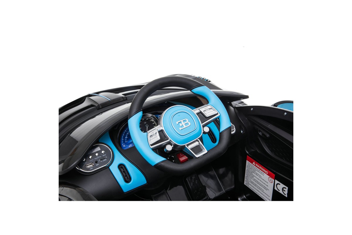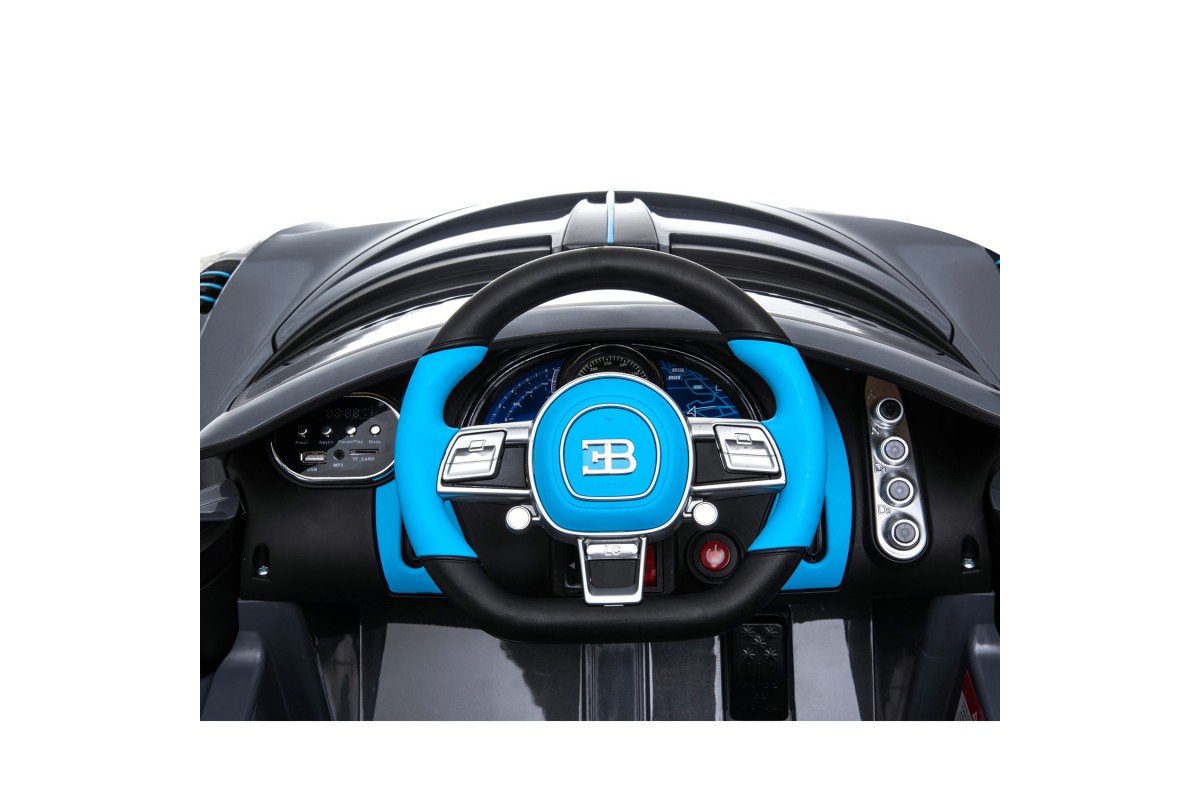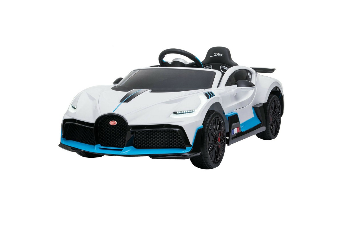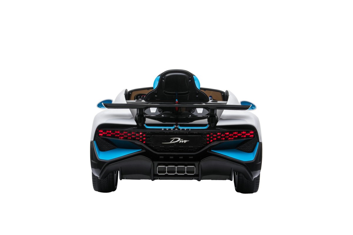 Детский электромобиль Bugatti Divo 12V - WHITE - HL338 - это детский одноместный электромобиль Bugatti Divo по лицензии известного автоконцерна выполнен по стилю легендарной спортивной версии Bugatti. Двухскоростной автомобиль с пультом радиоуправления, у него открываются боковые двери и багажник. Отличие этой модели от других – мягкие резиновые колеса, встроенная магнитола, LEВ подсветка фар и звук мотора, сиденье из перфорированной черной экокожи с логотипом и пульт управления 2.4G.