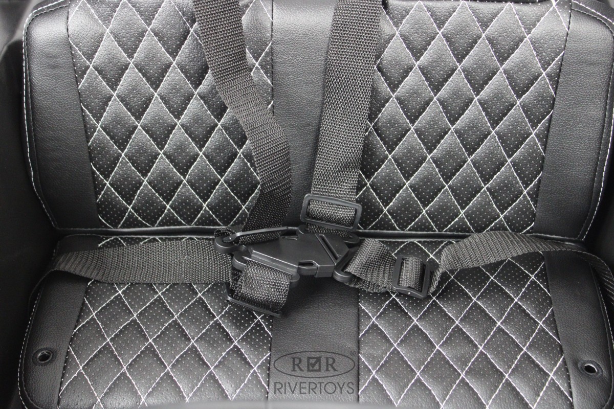 В салоне установлено сиденье из эко-кожи, дополненное пятиточечным ремнем безопасности. Для управления джипом используется индивидуальный пульт, настраиваемый по Bluetooth. Сзади и спереди установлены амортизаторы, благодаря которым ездить по неровным поверхностям будет намного комфортнее.