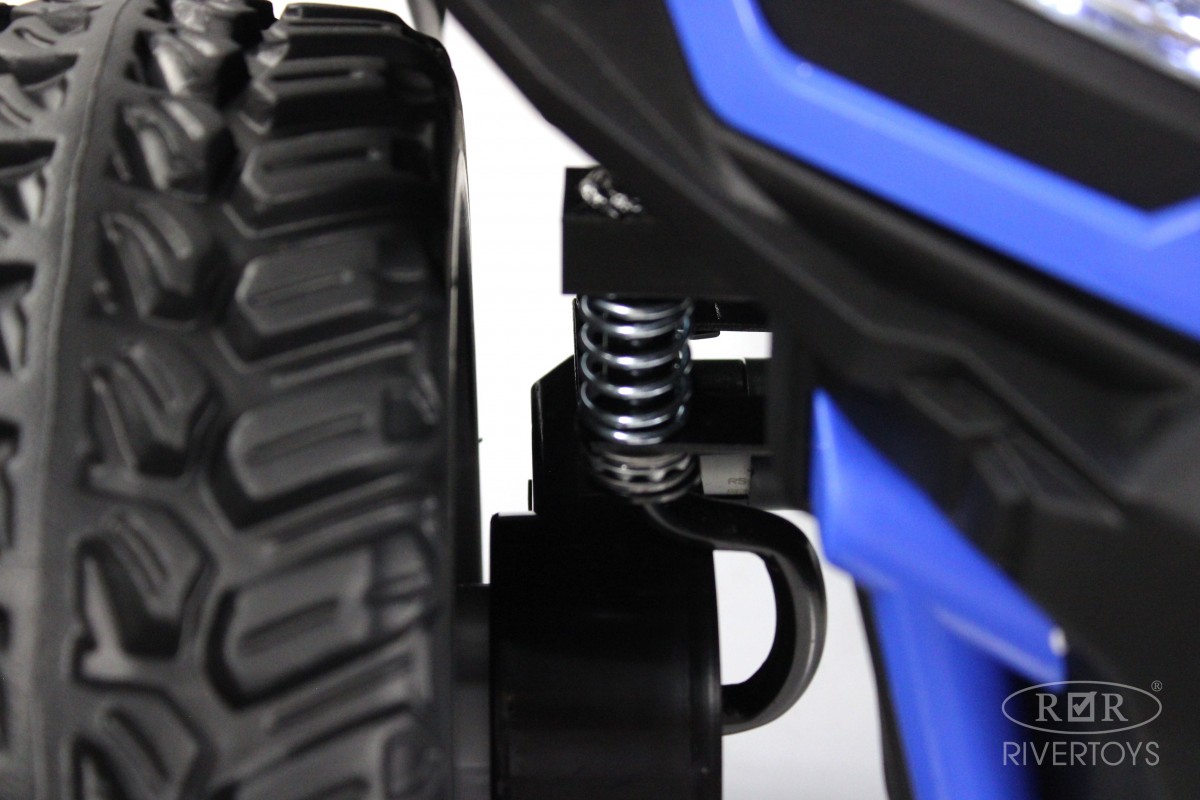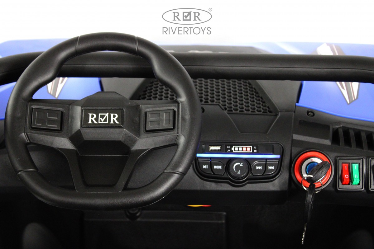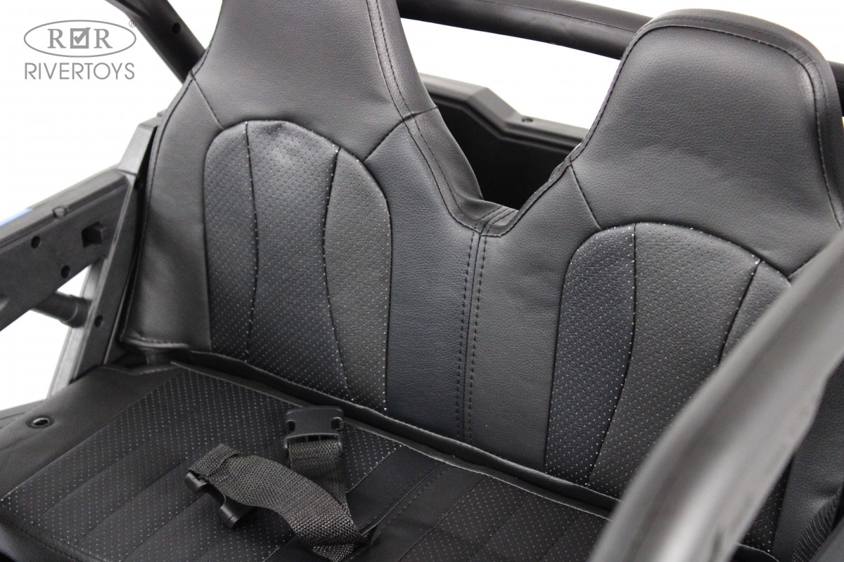 Сидение из эко-кожи обеспечивает комфорт во время езды, а ремень безопасности (2 шт.) обеспечивает безопасность ребенка. Включение осуществляется с помощью ключа, а медиа-панель с USB-входом, Bluetooth и индикатором заряда батареи позволяет наслаждаться музыкой и играми во время поездки.