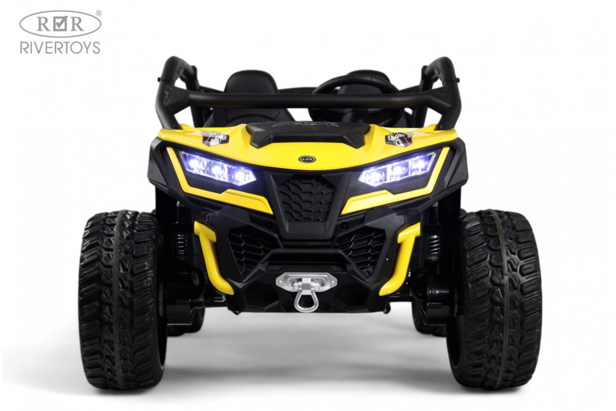 Сидение из эко-кожи обеспечивает комфорт во время езды, а ремень безопасности (2 шт.) обеспечивает безопасность ребенка. Включение осуществляется с помощью ключа, а медиа-панель с USB-входом, Bluetooth и индикатором заряда батареи позволяет наслаждаться музыкой и играми во время поездки.