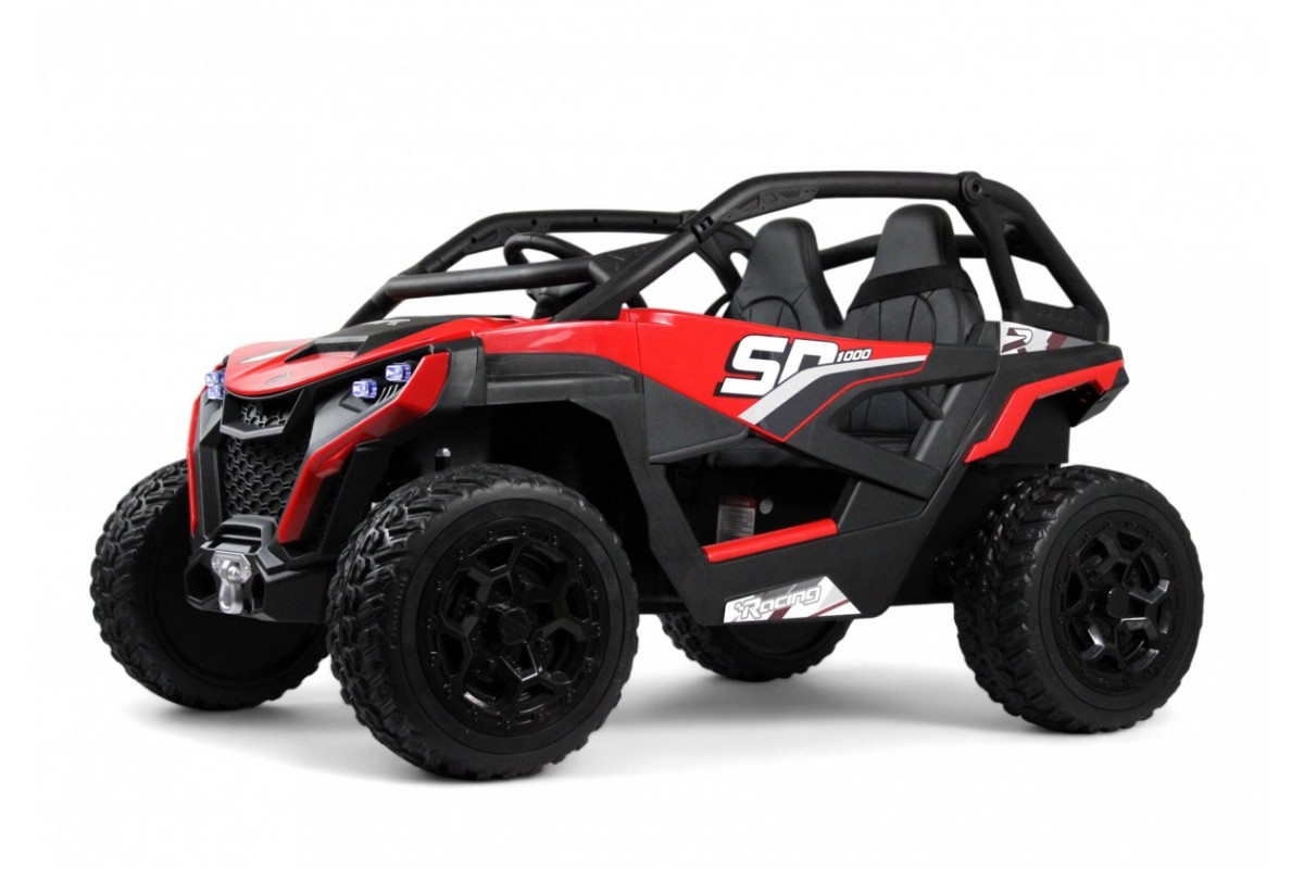 Сидение из эко-кожи и полосные ремни безопасности (2шт.) обеспечивают комфорт и безопасность во время езды. Включение осуществляется с помощью ключа, а на медиа-панели есть USB-вход, Bluetooth и индикатор заряда батареи.