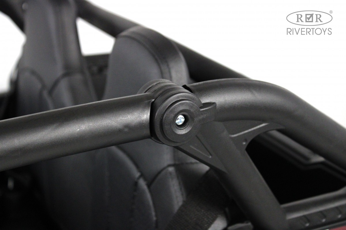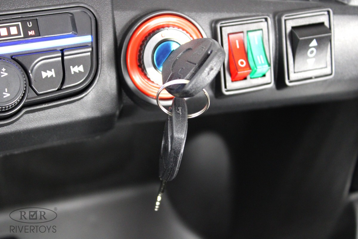 Сидение из эко-кожи и полосные ремни безопасности (2шт.) обеспечивают комфорт и безопасность во время езды. Включение осуществляется с помощью ключа, а на медиа-панели есть USB-вход, Bluetooth и индикатор заряда батареи.