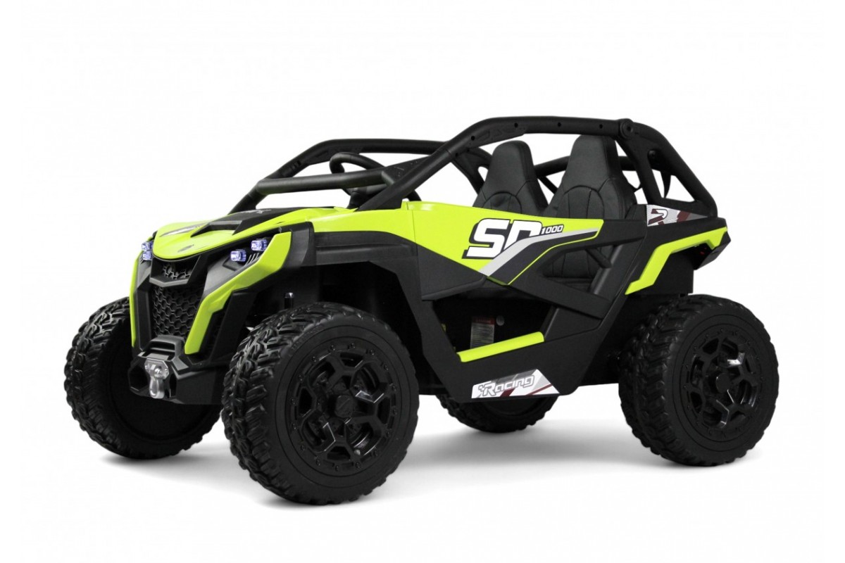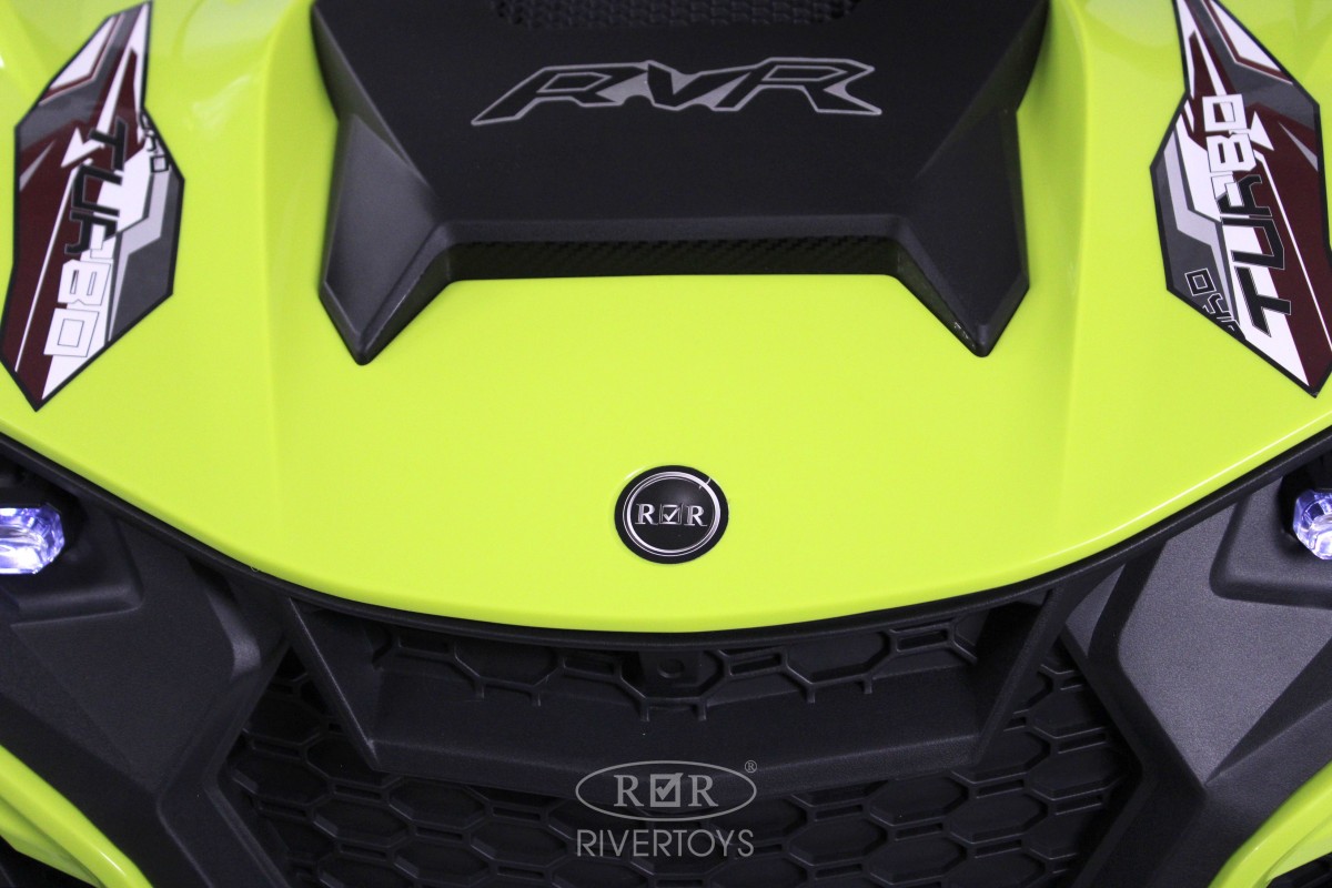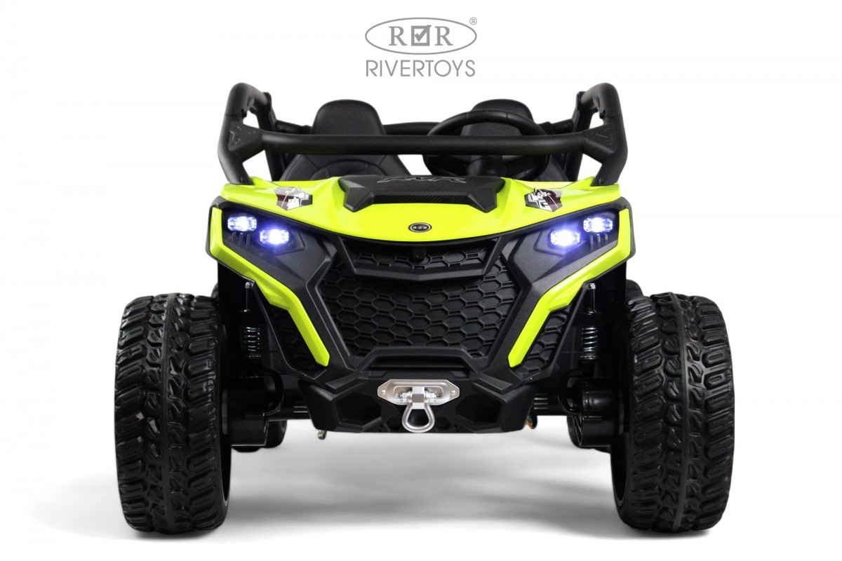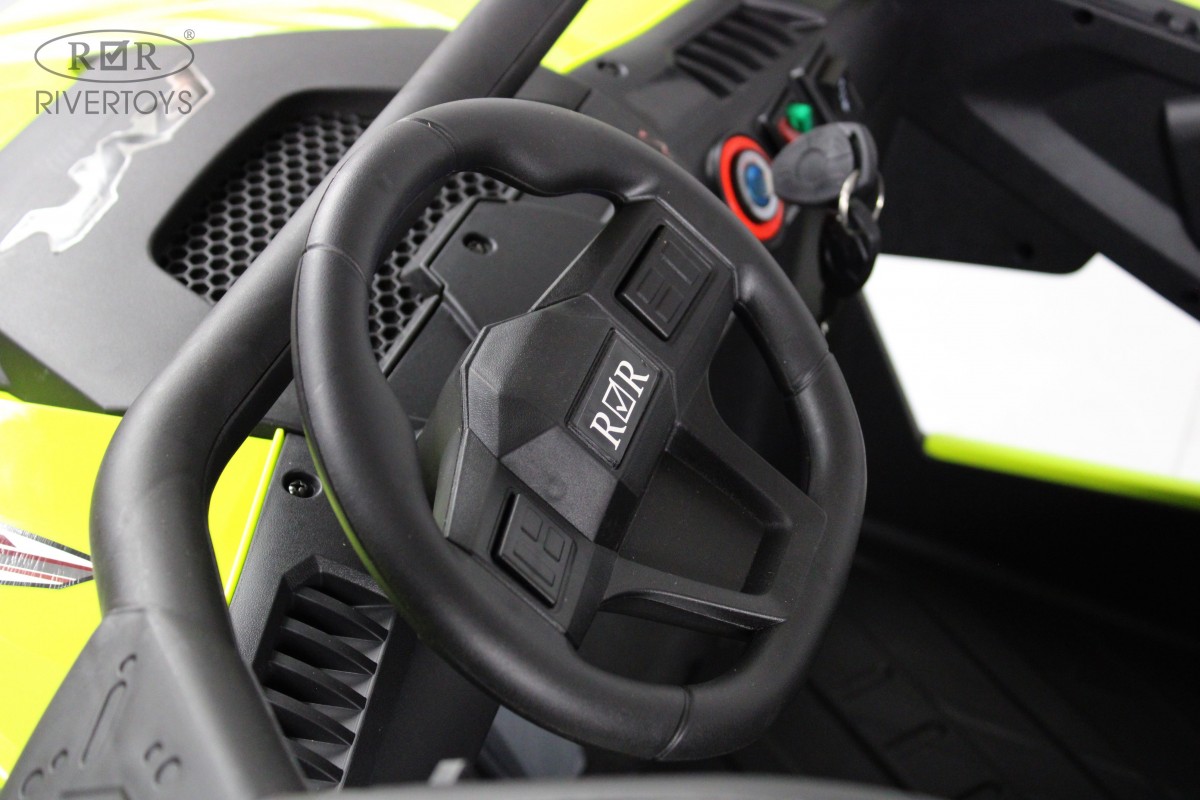 Сидение из эко-кожи и полосные ремни безопасности (2шт.) обеспечивают комфорт и безопасность во время езды. Включение осуществляется с помощью ключа, а на медиа-панели есть USB-вход, Bluetooth и индикатор заряда батареи.