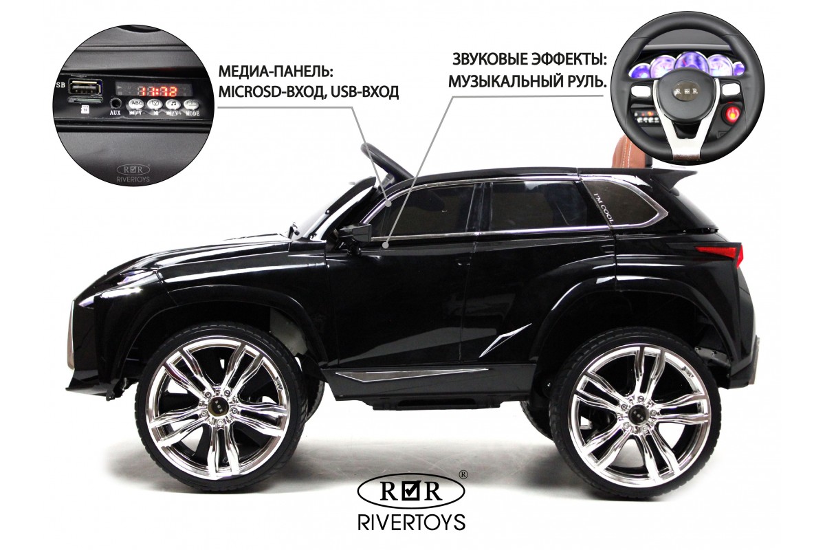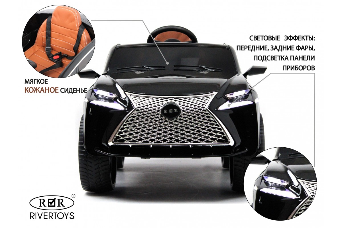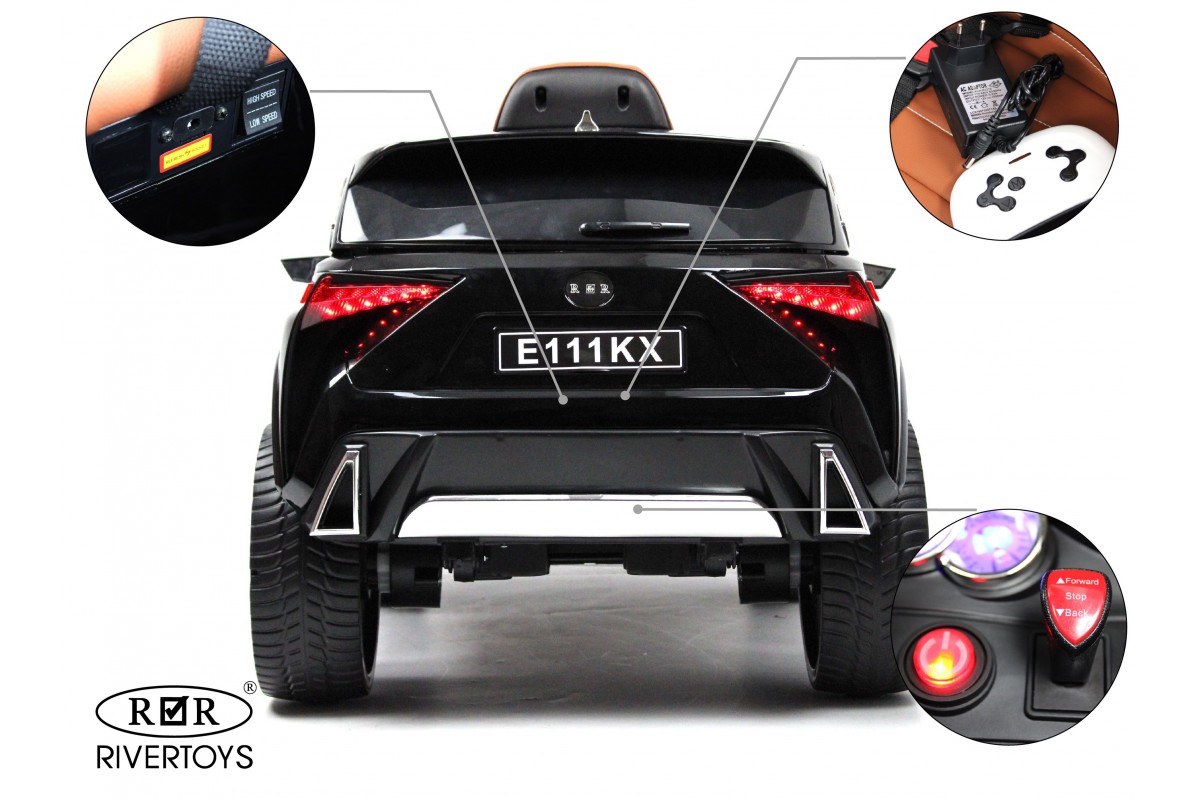 Lexus E111KX – реалистичный электромобиль с индивидуальным пультом ДУ, красивой подсветкой, большой радиаторной решеткой и ярким дизайном. Модель комплектуется колесами из прочной и износостойкой EVA-резины. Для удобства водителя предусмотрено кожаное кресло.