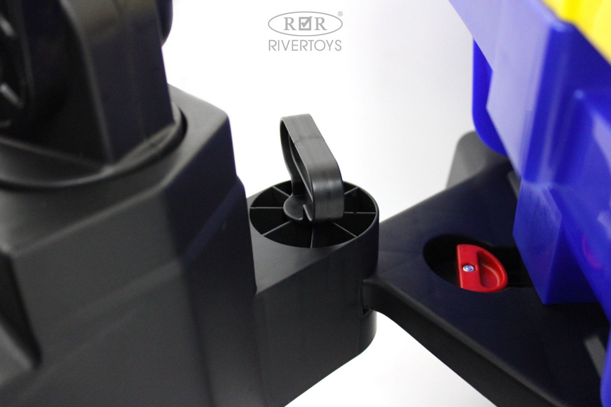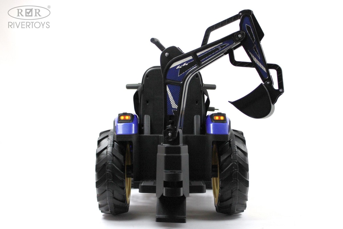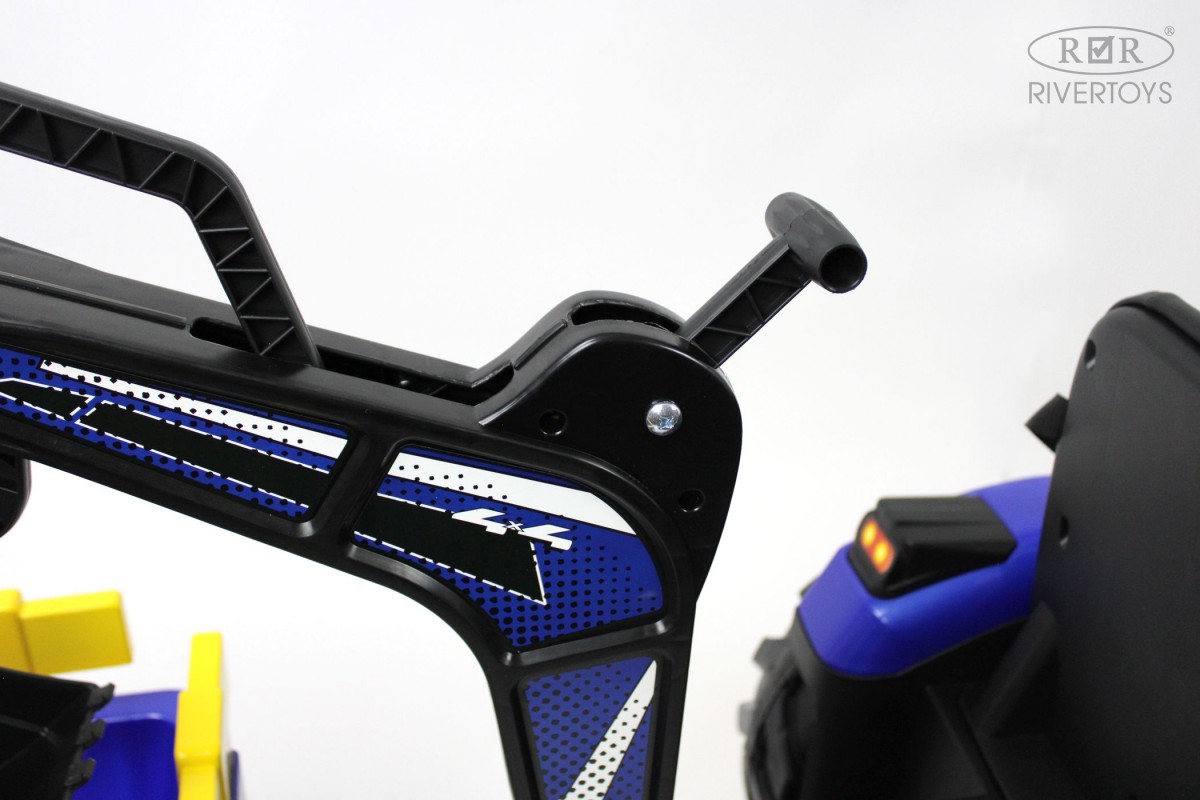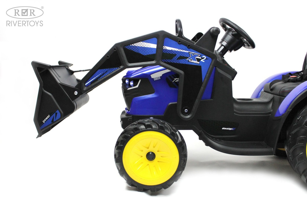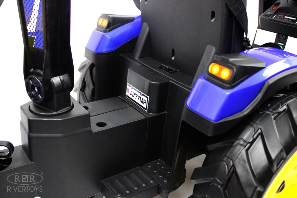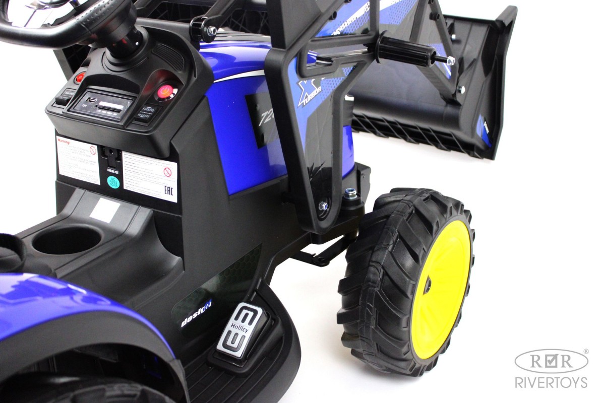 Оснащён ковшом-коробом спереди (4 положения) и поворотным ковшом-лопатой сзади (4 положения), а так же съемным поворотным прицепом.