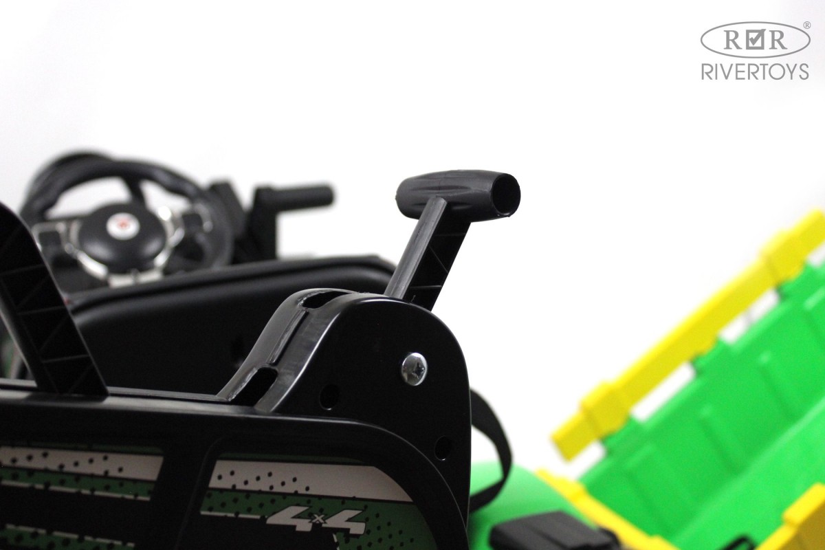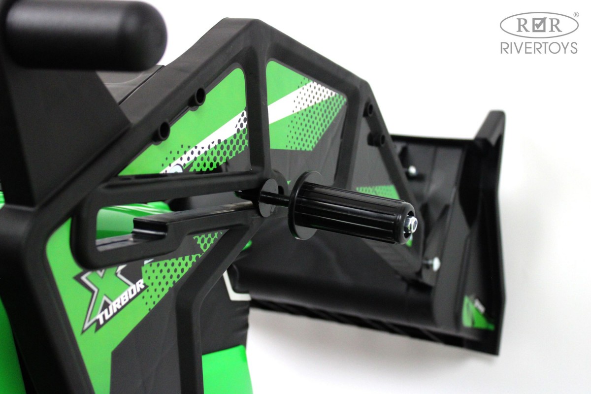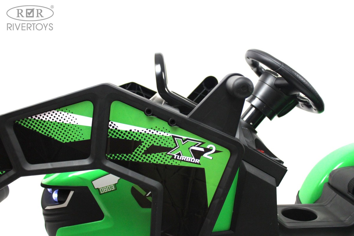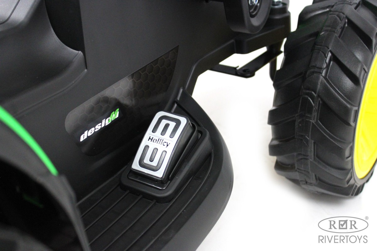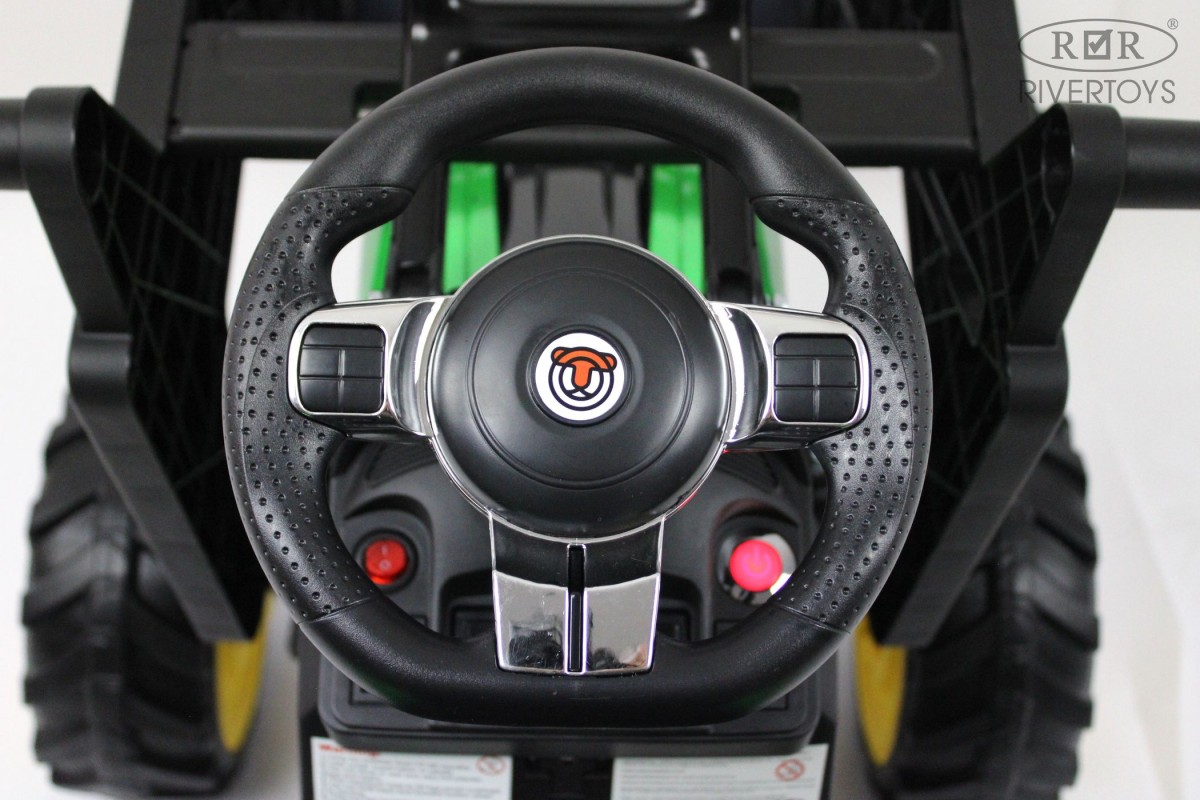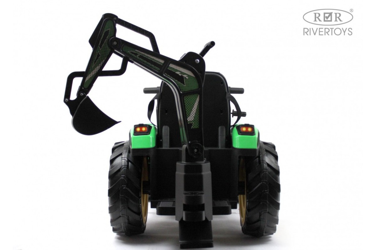 Оснащён ковшом-коробом спереди (4 положения) и поворотным ковшом-лопатой сзади (4 положения), а так же съемным поворотным прицепом.