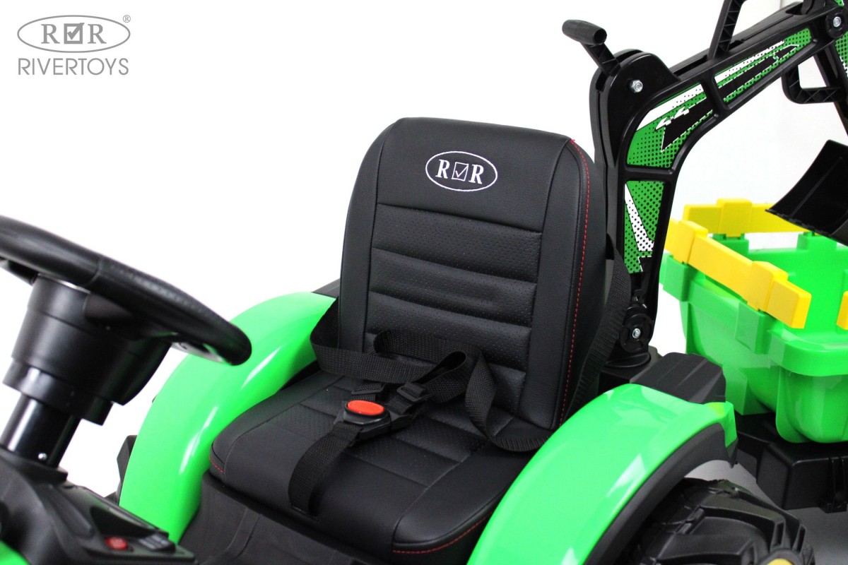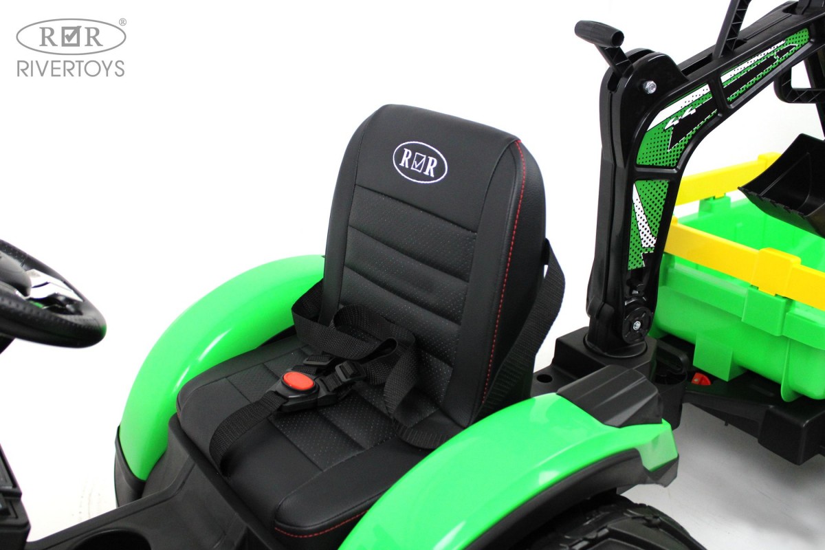Сидение: кожаное, со сменой положения назад, для работы с ковшом-лопатой. Ремень безопасности трех-точечный.
