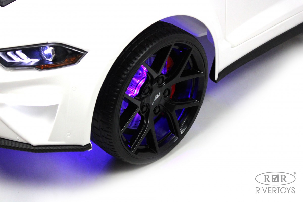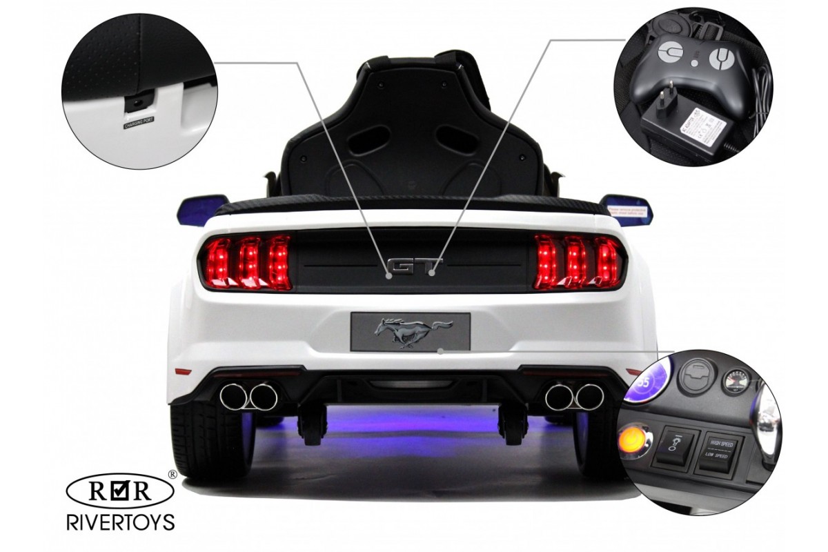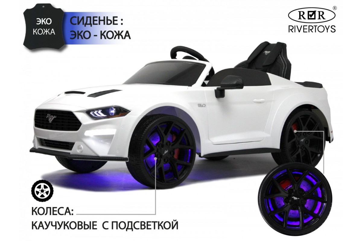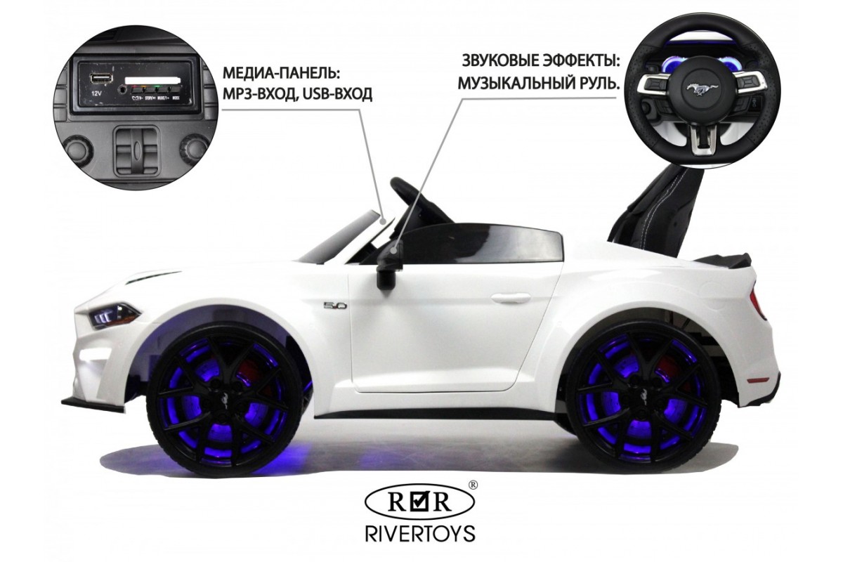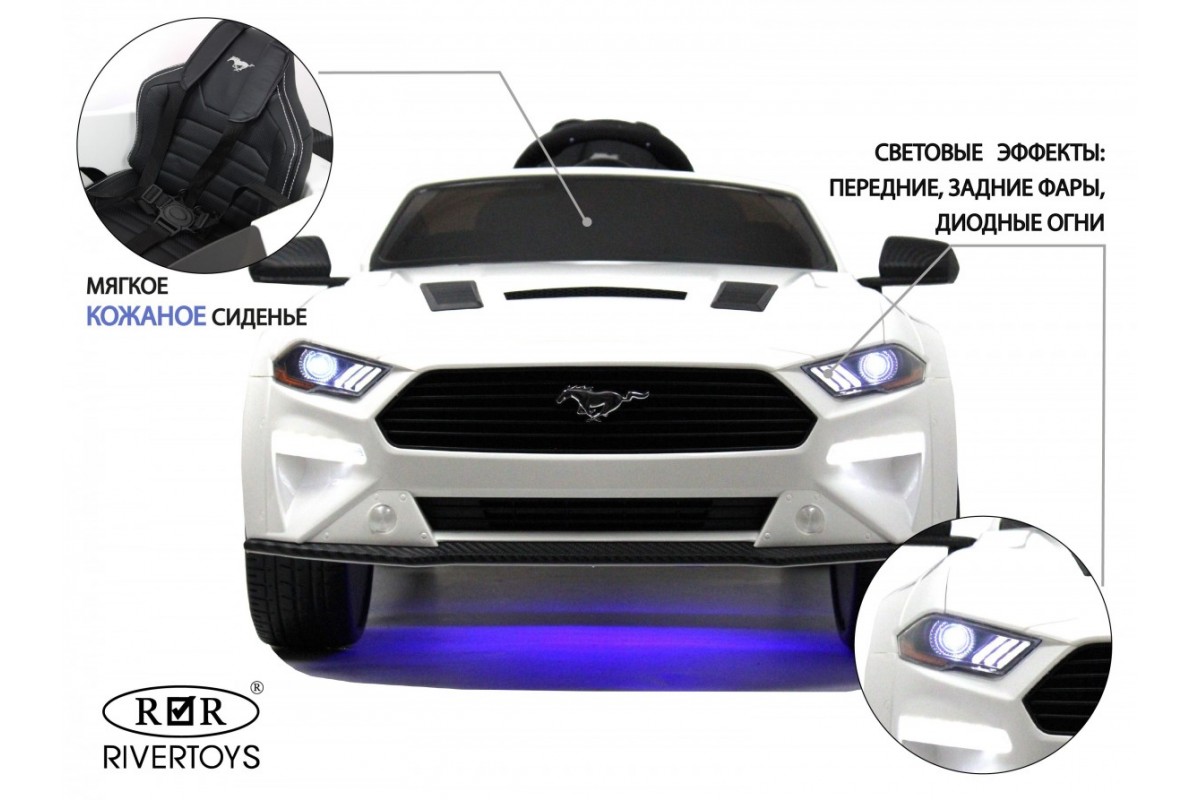 Лицензионный электромобиль RiverToys Ford-Mustang GT-A222MP позволит даже самым маленьких прокатиться на культовом спортивном седане с логотипом в виде лошади на радиаторной решетке. В машинке включаются передние и задние фары, есть звуковые эффекты и резиновые колеса с красивой подсветкой.