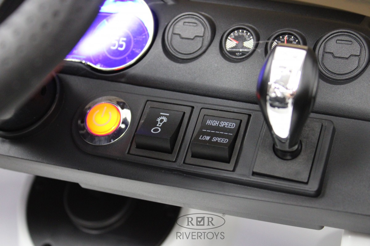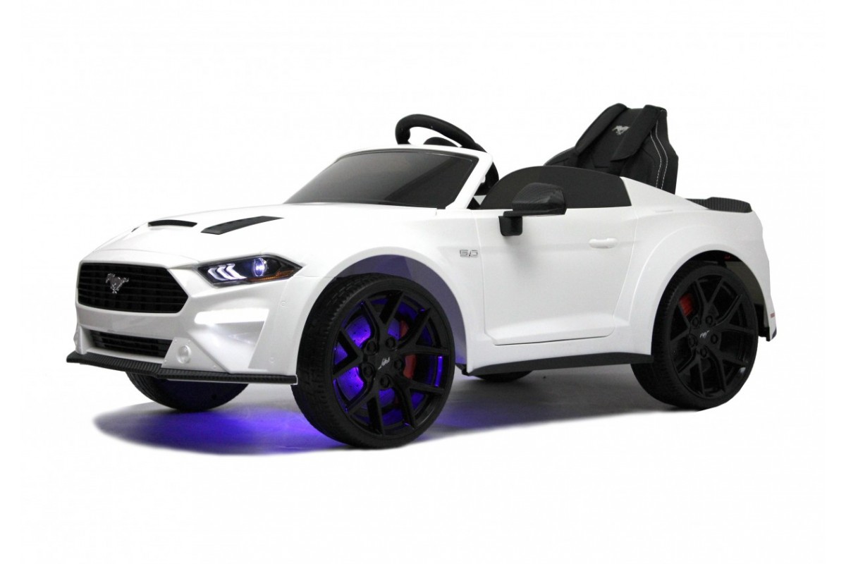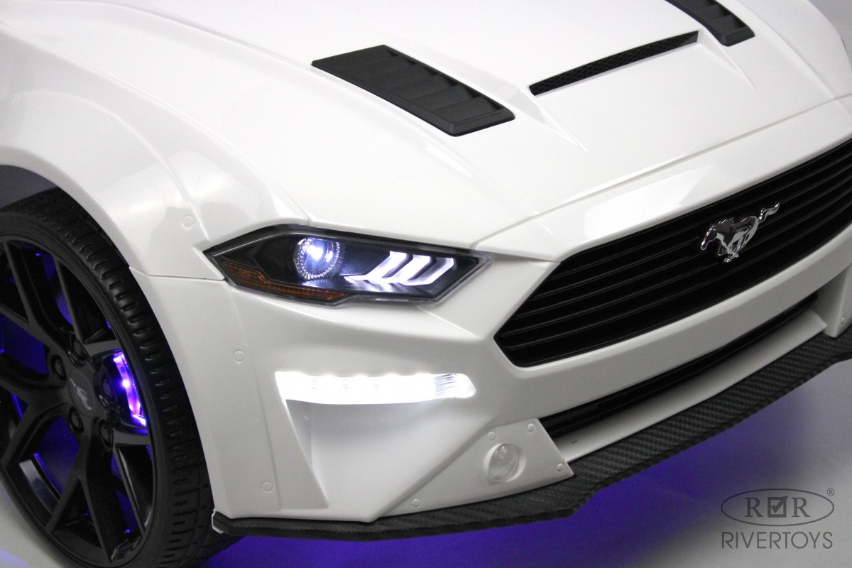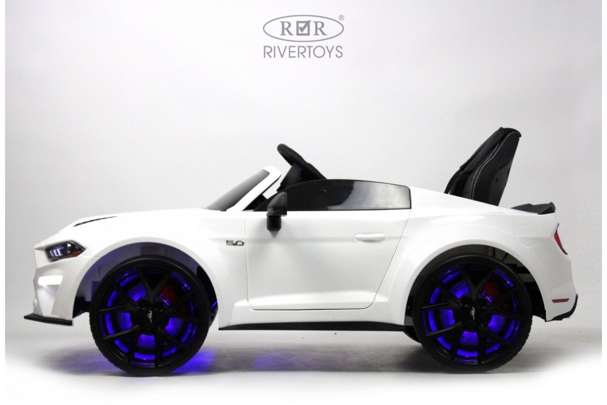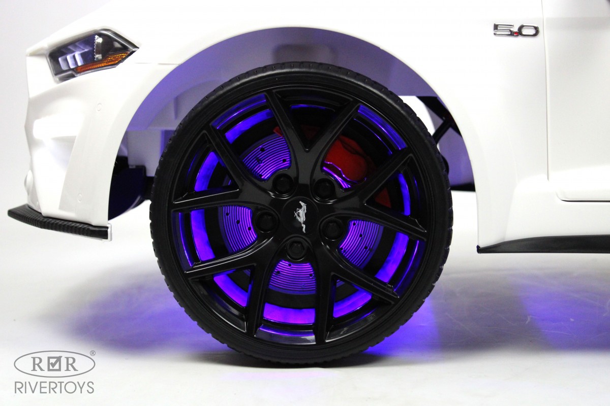 Лицензионный электромобиль RiverToys Ford-Mustang GT-A222MP позволит даже самым маленьких прокатиться на культовом спортивном седане с логотипом в виде лошади на радиаторной решетке. В машинке включаются передние и задние фары, есть звуковые эффекты и резиновые колеса с красивой подсветкой.