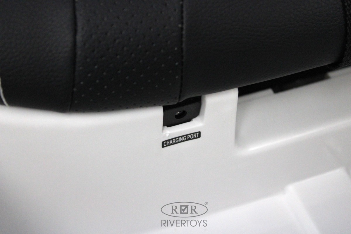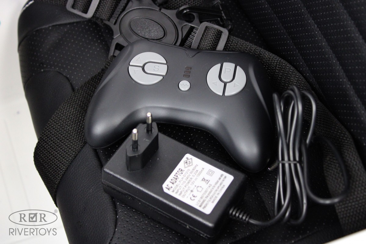 Сидение обтянуто эко-кожей и может двигаться вперед-назад для настройки под параметры ребенка. Для безопасности предусмотрен полосной ремень. Чтобы было удобнее везти за собой электромобиль, спереди выдвигается ручка. В собранном виде размеры модели составляют 125х74,5х54 см, а вес – 19,37 кг