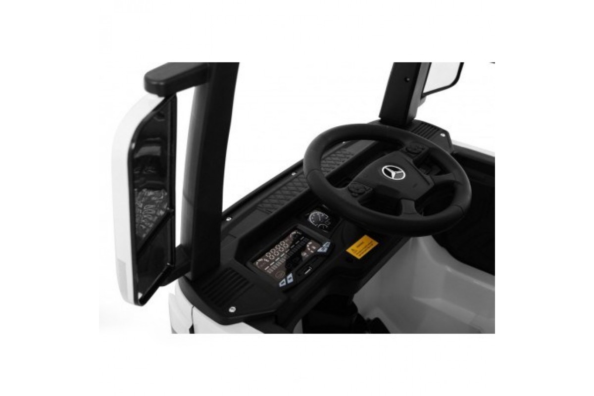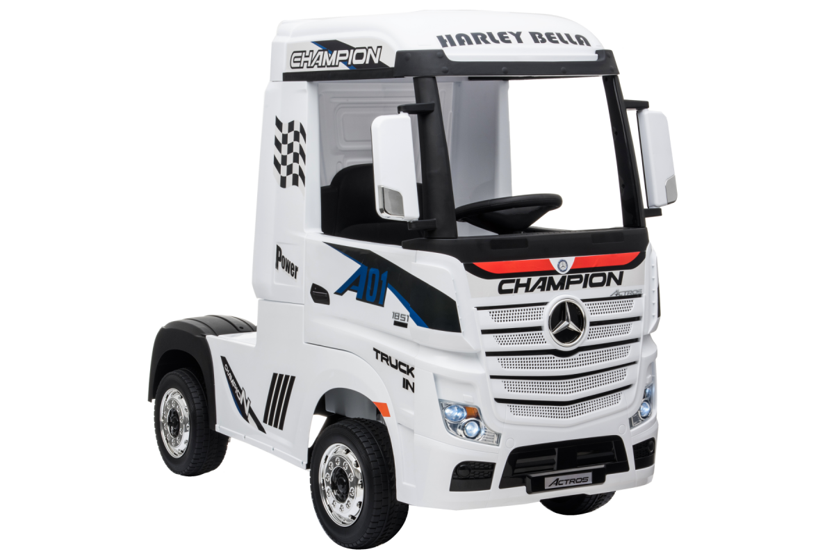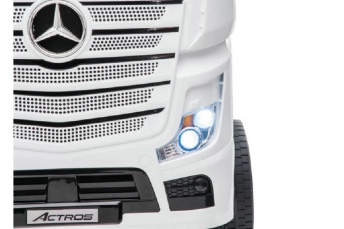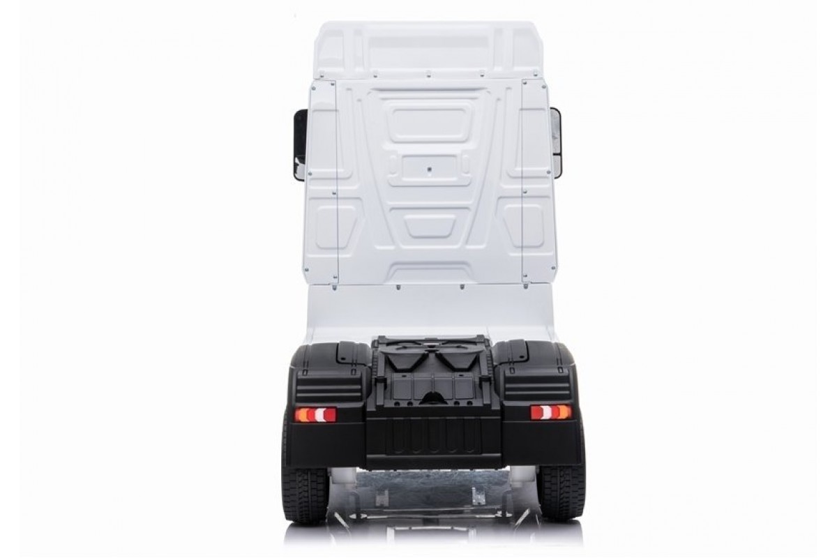 Детский электромобиль фура Mercedes-Benz Actros 4WD 12V - HL358-LUX-WHITE - это большой, просторный электромобиль Mercedes Benz Actros с настоящей водительской кабиной. Высота крыши позволяет с комфортом кататься детям ростом до 120 см. По бокам расположены открывающиеся дверцы с фиксирующими замками, чтобы ребёнок быстро садился и покидал салон. Машина легко перемещается при разряженном аккумуляторе, с помощью откидной ручки, расположенной под передним бампером. Таким образом, мамы будут транспортировать игрушку на любые расстояния.