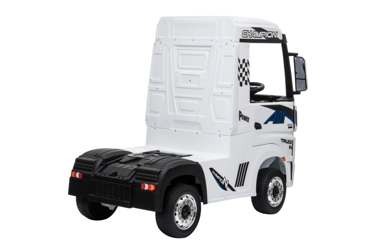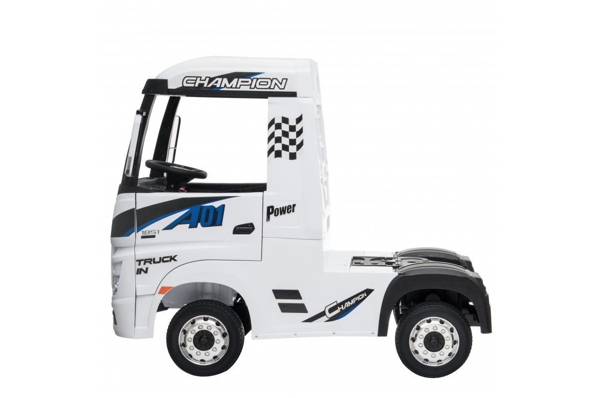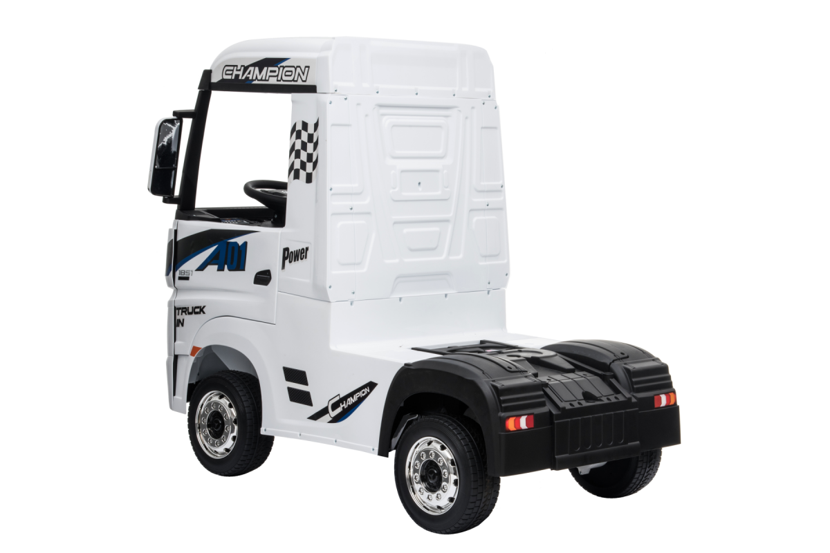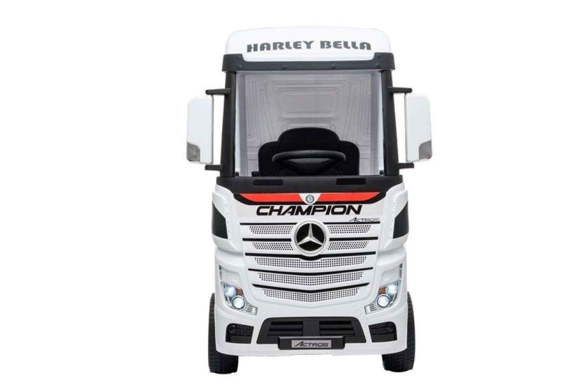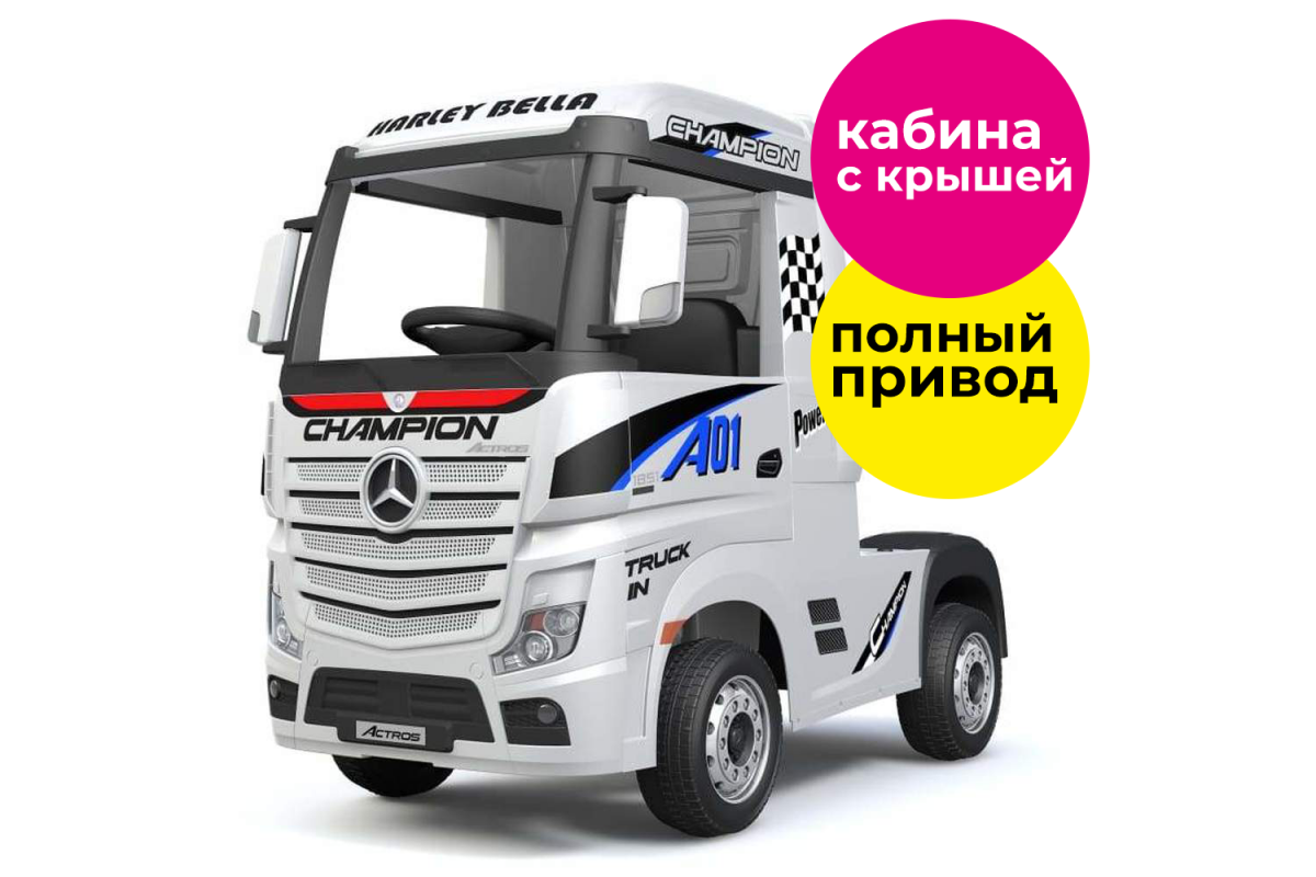 Детский электромобиль фура Mercedes-Benz Actros 4WD 12V - HL358-LUX-WHITE - это большой, просторный электромобиль Mercedes Benz Actros с настоящей водительской кабиной. Высота крыши позволяет с комфортом кататься детям ростом до 120 см. По бокам расположены открывающиеся дверцы с фиксирующими замками, чтобы ребёнок быстро садился и покидал салон. Машина легко перемещается при разряженном аккумуляторе, с помощью откидной ручки, расположенной под передним бампером. Таким образом, мамы будут транспортировать игрушку на любые расстояния.