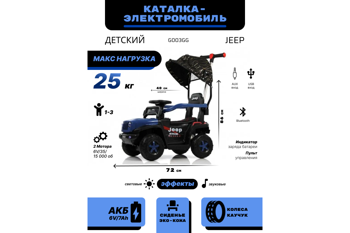 Детский электромобиль G003GG с дистанционным управлением и родительской ручкой