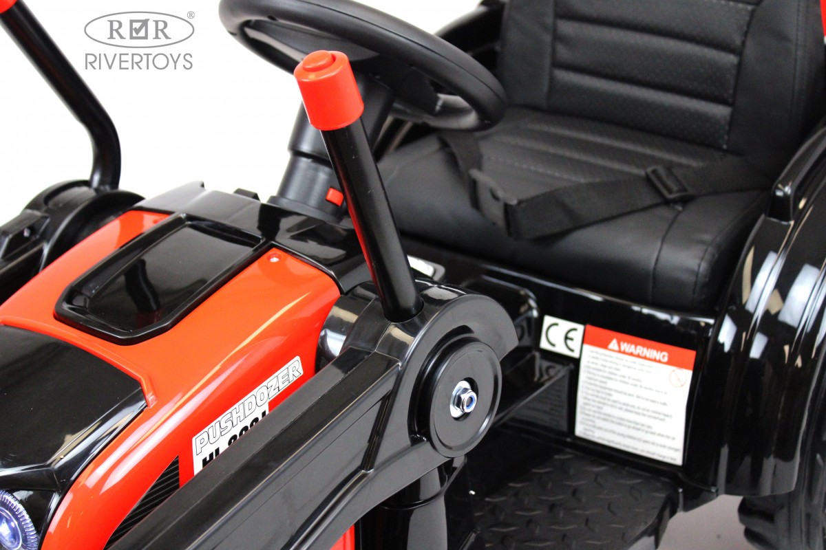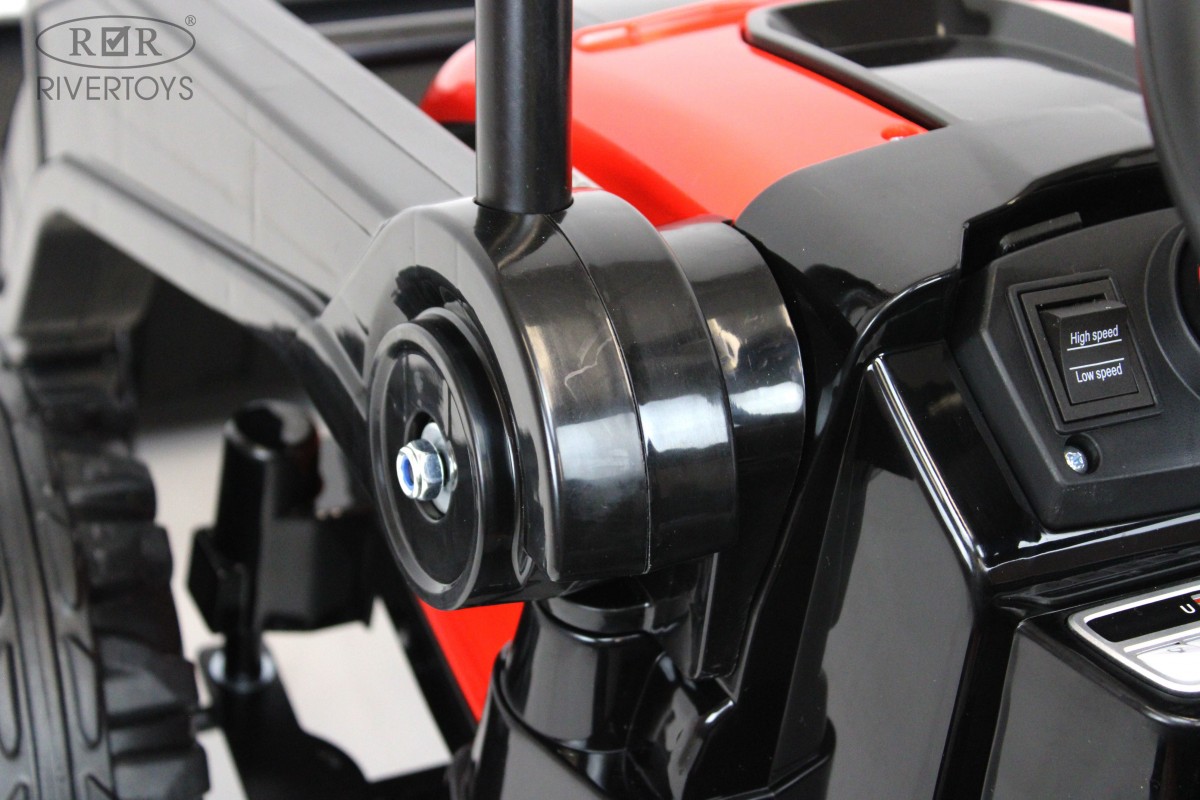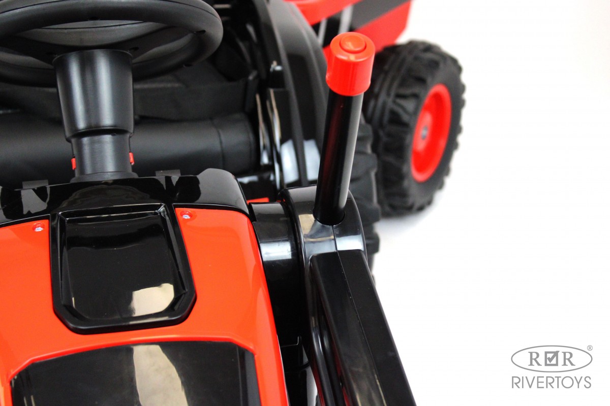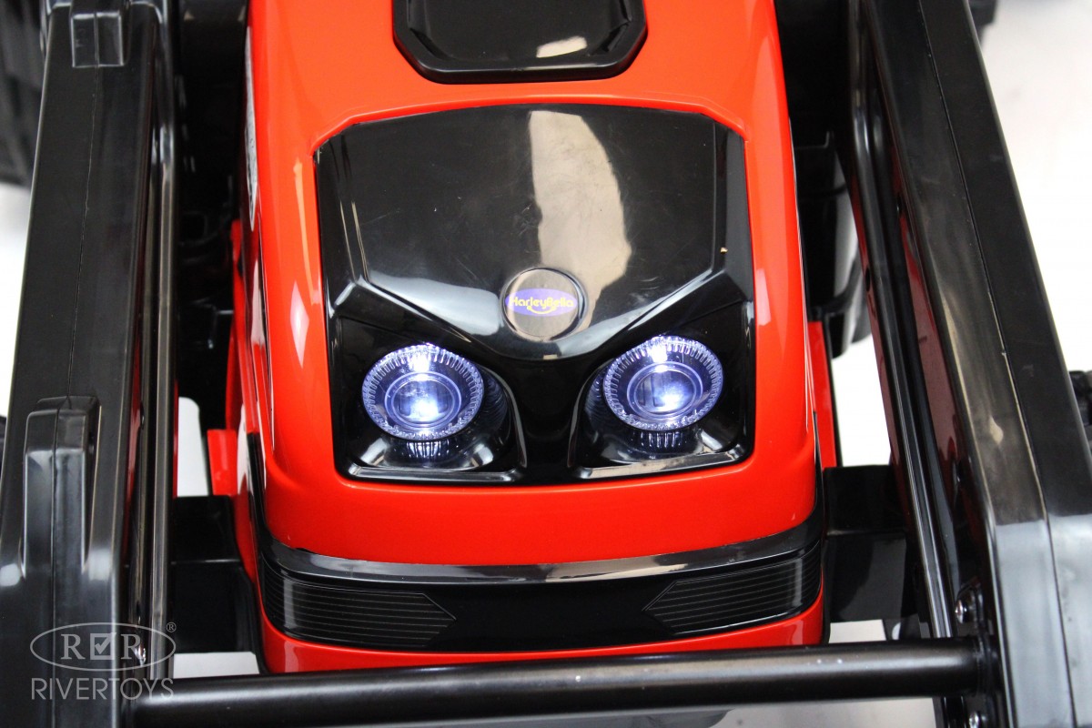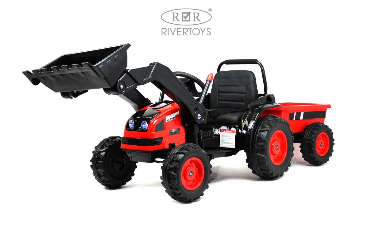 Электромобиль RiverToys HL395 представляет собой Трактор-погрузчик с прицепом. Трактор оснащен резиновыми колесами с крупным протектором и передним ковшом-коробом с механическим подъемом. Передние фары имеют подсветку, включаемую отдельной кнопкой. Сиденье обтянуто эко-кожей.
