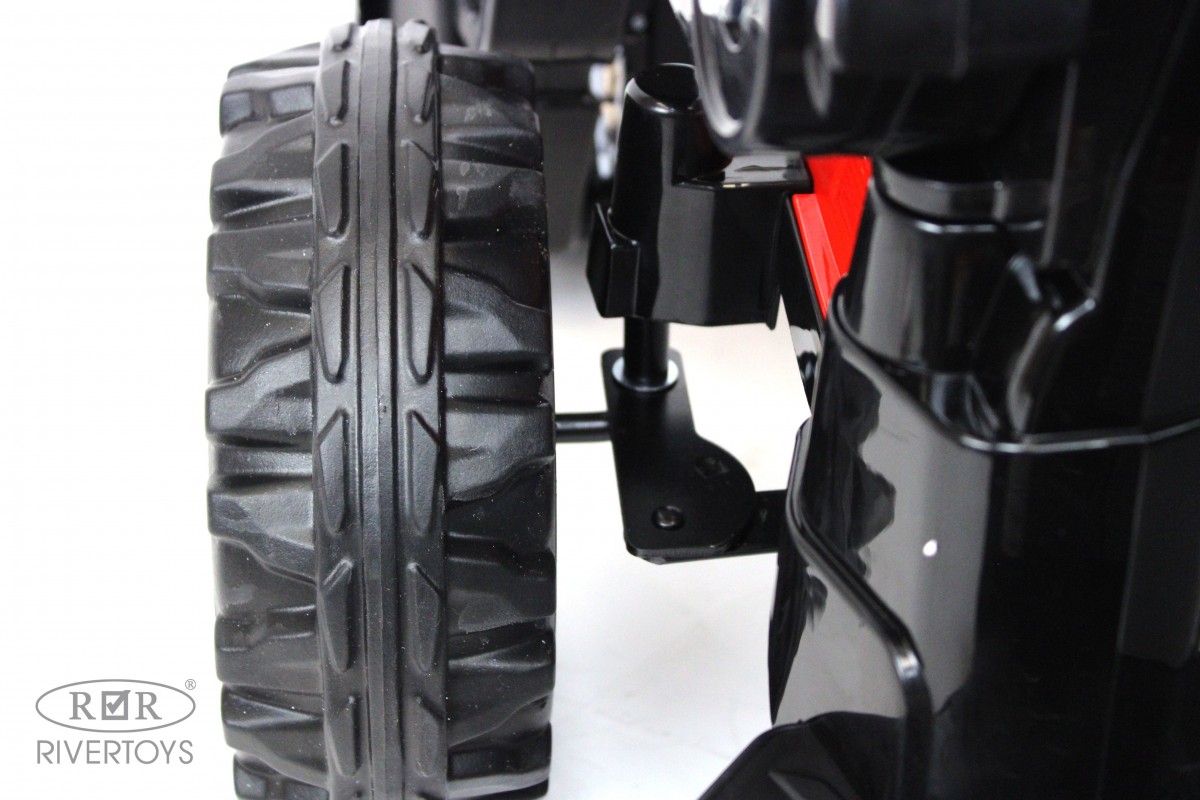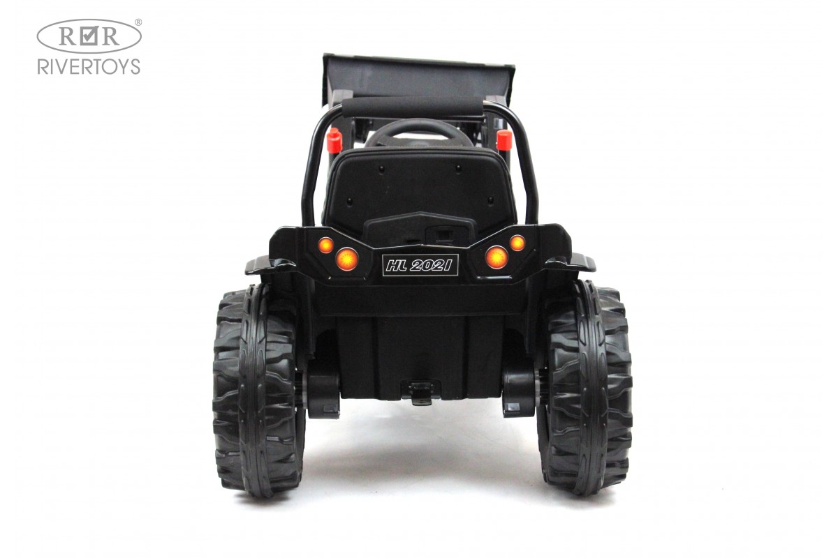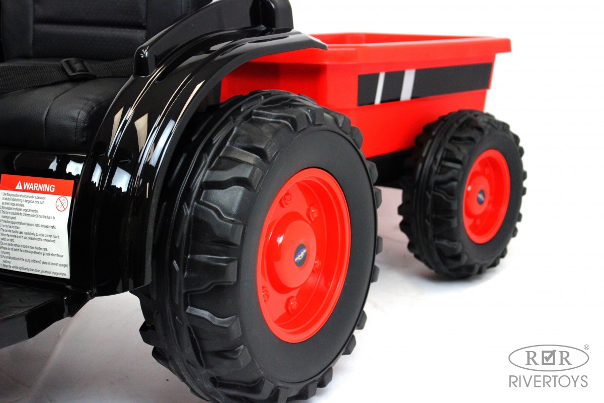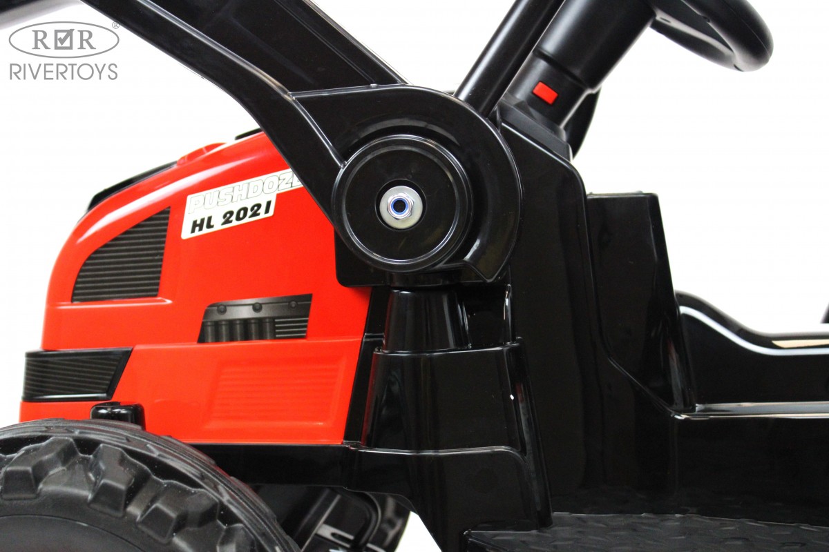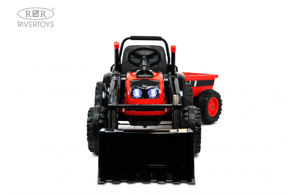 Электромобиль RiverToys HL395 представляет собой Трактор-погрузчик с прицепом. Трактор оснащен резиновыми колесами с крупным протектором и передним ковшом-коробом с механическим подъемом. Передние фары имеют подсветку, включаемую отдельной кнопкой. Сиденье обтянуто эко-кожей.