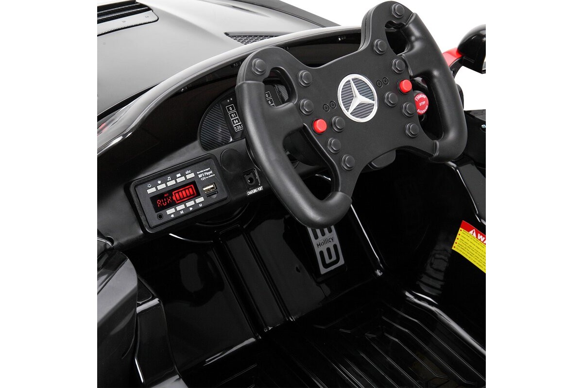 Детский электромобиль Hollicy Mercedes GT4 AMG Carbon Black 12V - SX1918S-BLACK-PAINT - это спорткар нового поколения от популярной марки. Стильный дизайн, уникальная концепция руля, функциональная оснащённость и комфортный салон. Мальчики и девочки будут в восторге от новой игрушки, а родители обязательно оценят воспроизведение гоночного авто в мини варианте. Для любителей погонять в вечернее время есть дополнительный плюс - в сумерках красочная подсветка колёс выглядит ещё выигрышнее, чем днём.