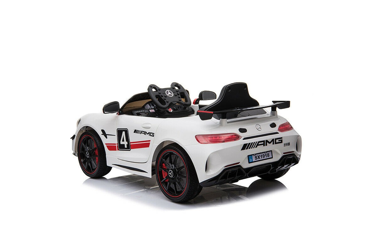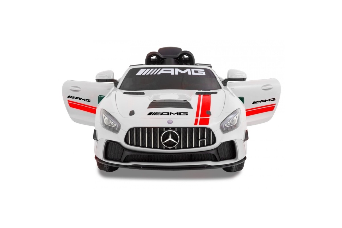 Детский электромобиль Hollicy Mercedes GT4 AMG White 12V - SX1918S-WHITE - это спорткар нового поколения от популярной марки. Стильный дизайн, уникальная концепция руля, функциональная оснащённость и комфортный салон. Мальчики и девочки будут в восторге от новой игрушки, а родители обязательно оценят воспроизведение гоночного авто в мини варианте. Для любителей погонять в вечернее время есть дополнительный плюс - в сумерках красочная подсветка колёс выглядит ещё выигрышнее, чем днём.