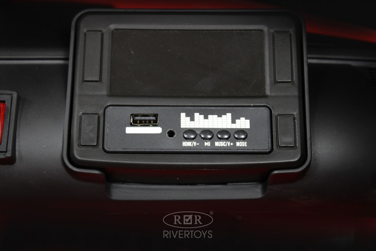Электромобиль оснащен световыми и звуковыми эффектами, которые делают его еще более привлекательным для детей. Передние и задние фары (диодные огни) включаются и выключаются отдельной кнопкой на панели, а музыкальный руль с клаксоном и заводскими мелодиями создает атмосферу настоящего автомобиля.