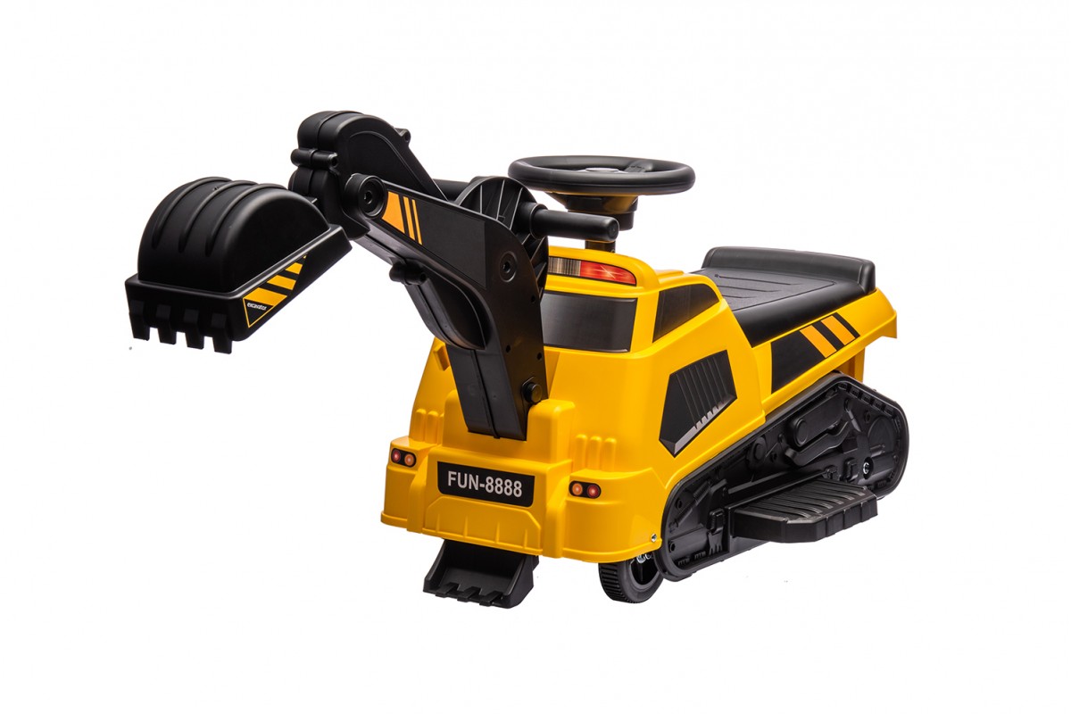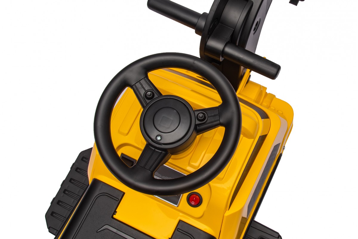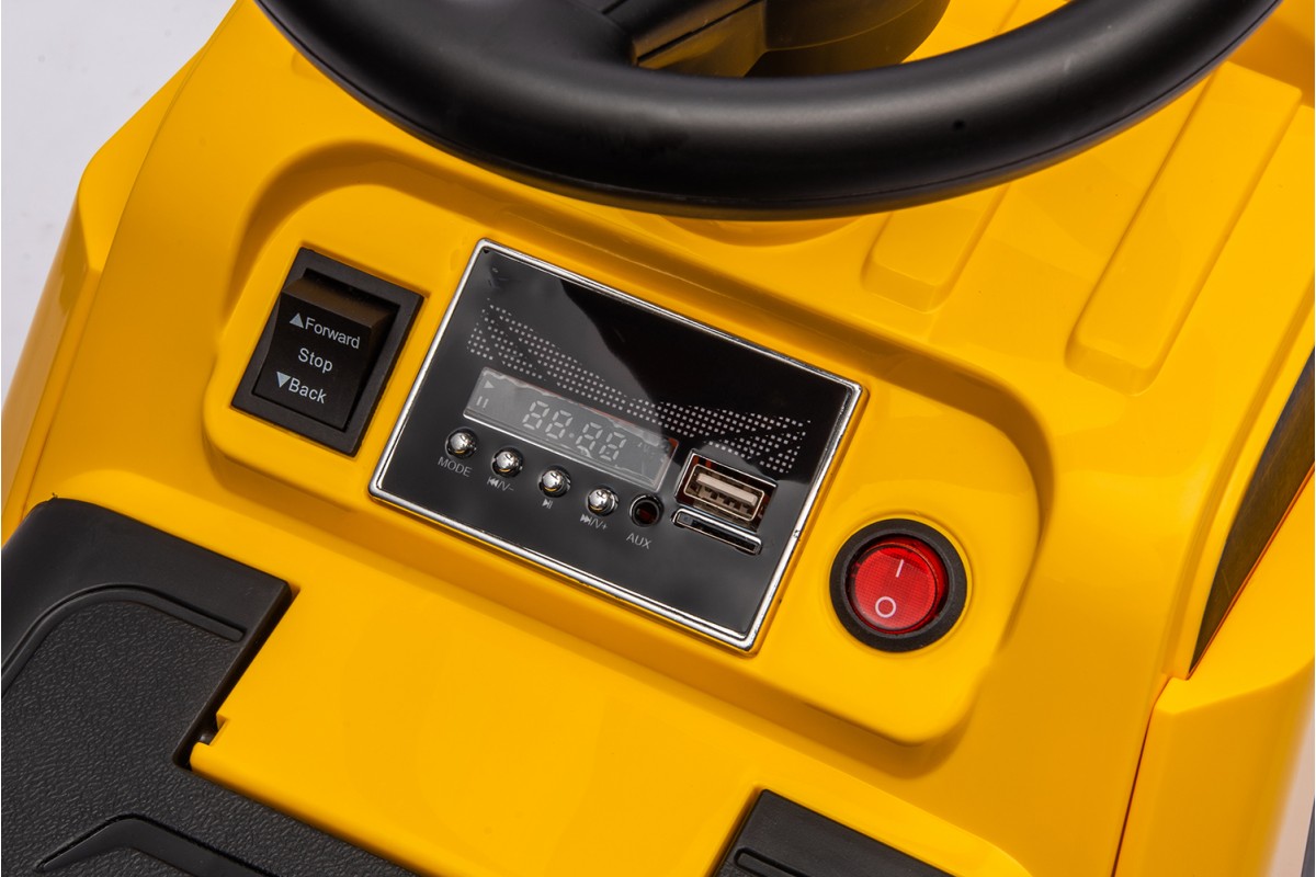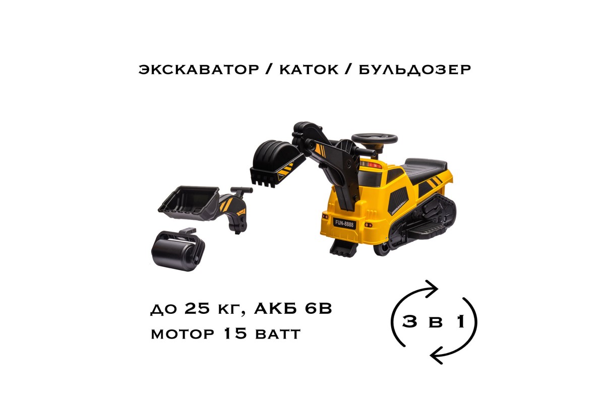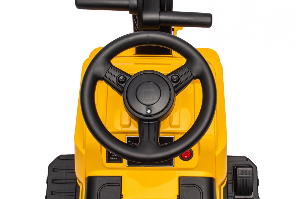 Трактор выполнен в стандартной черно-желтой цветовой гамме, очень функциональный, модель при смене насадок может легко превращаться в 3 различные вида строительной техники по вашему желанию: экскаватор, каток, погрузчик. Ребенок не захочет расставаться с новой игрушкой. Благодаря прорезиненным шинам и ножной педали ускорения, поездка будет и реалистичной, и безопасной. Вам надолго запомнится игра с этим уникальным трактором и несомненно захочется присесть за руль этого игрушечного трактора снова.