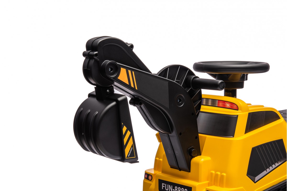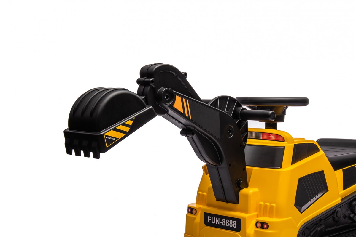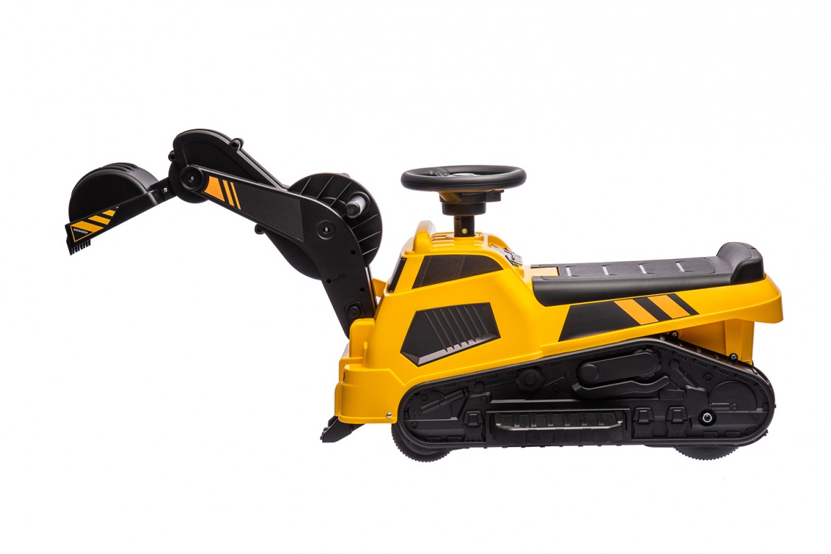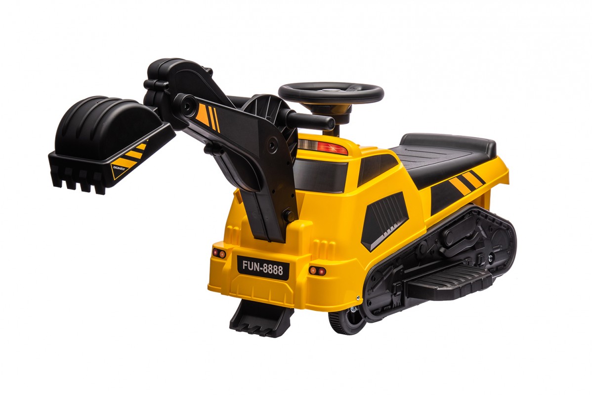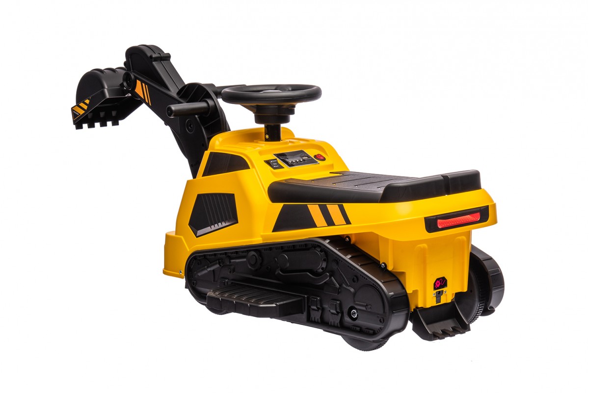 Трактор выполнен в стандартной черно-желтой цветовой гамме, очень функциональный, модель при смене насадок может легко превращаться в 3 различные вида строительной техники по вашему желанию: экскаватор, каток, погрузчик. Ребенок не захочет расставаться с новой игрушкой. Благодаря прорезиненным шинам и ножной педали ускорения, поездка будет и реалистичной, и безопасной. Вам надолго запомнится игра с этим уникальным трактором и несомненно захочется присесть за руль этого игрушечного трактора снова.