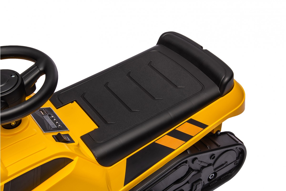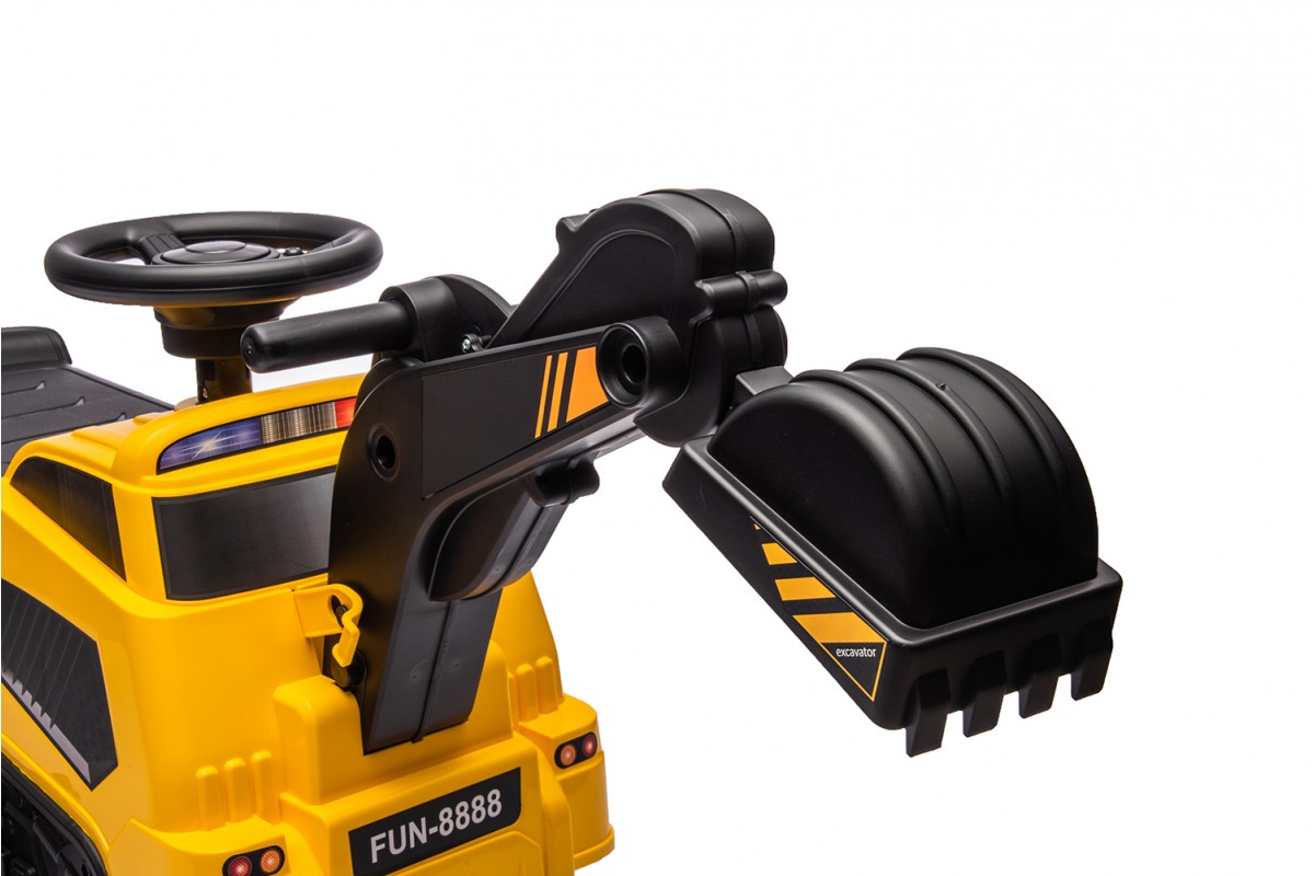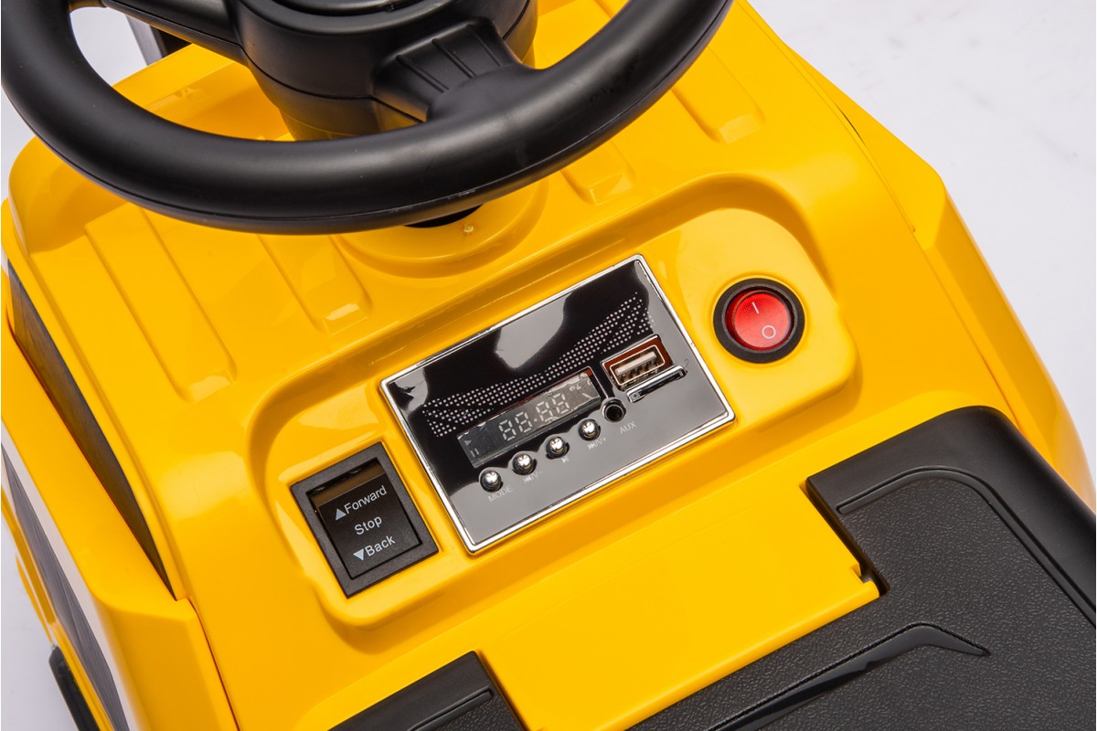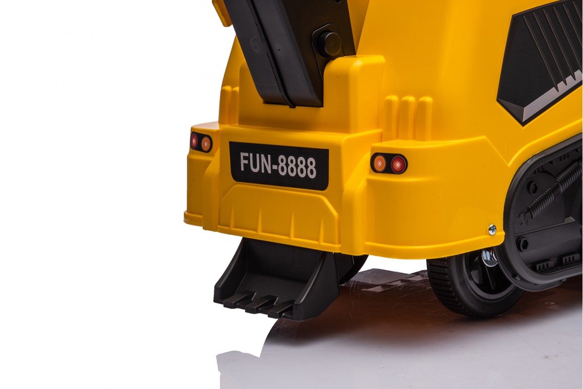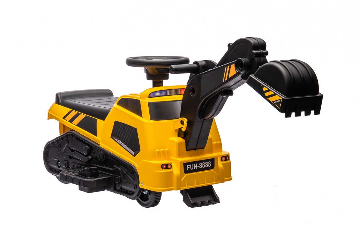 Трактор выполнен в стандартной черно-желтой цветовой гамме, очень функциональный, модель при смене насадок может легко превращаться в 3 различные вида строительной техники по вашему желанию: экскаватор, каток, погрузчик. Ребенок не захочет расставаться с новой игрушкой. Благодаря прорезиненным шинам и ножной педали ускорения, поездка будет и реалистичной, и безопасной. Вам надолго запомнится игра с этим уникальным трактором и несомненно захочется присесть за руль этого игрушечного трактора снова.