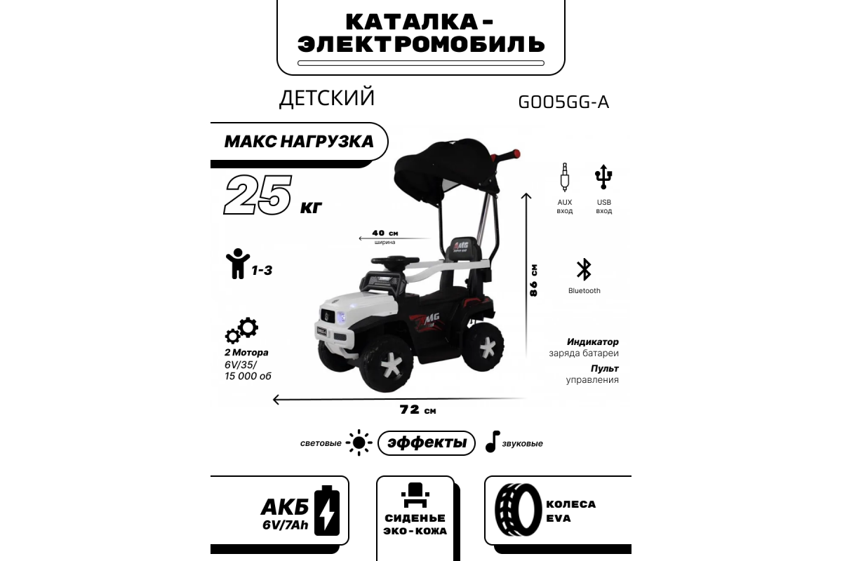 Детский электромобиль G005GG-A с дистанционным управлением и родительской ручкой