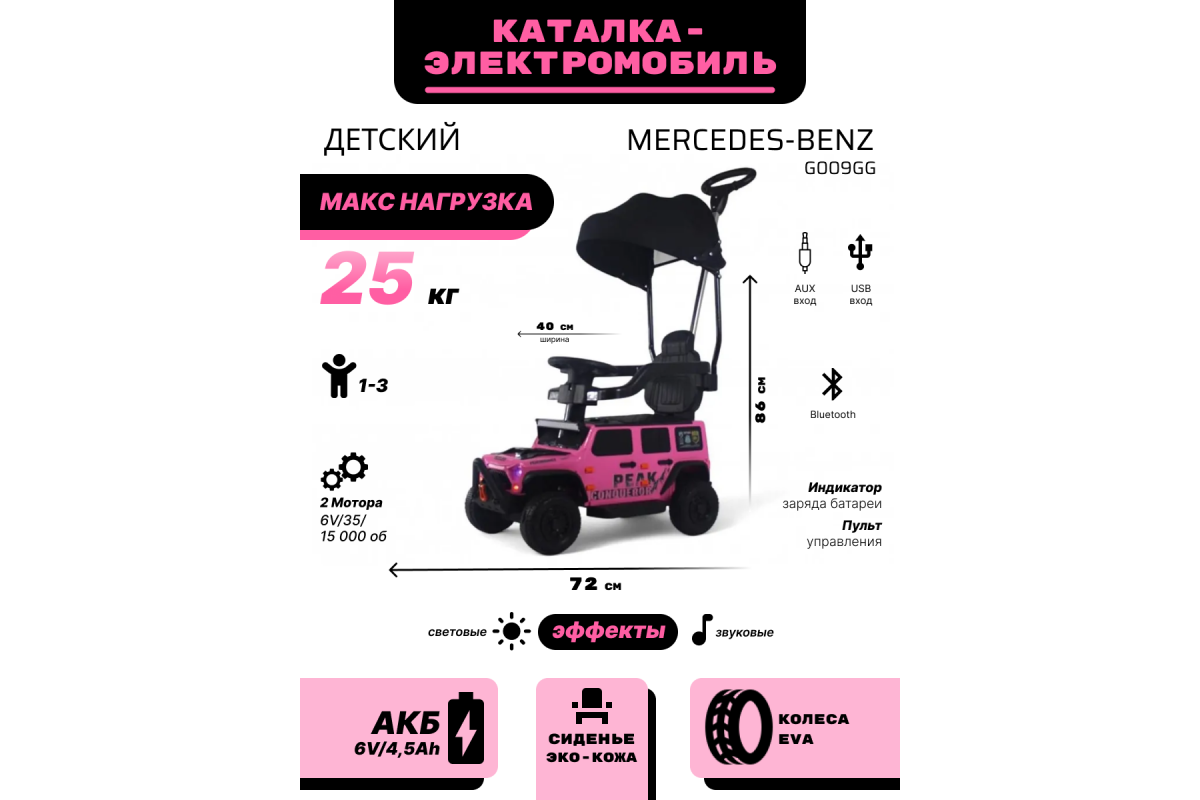 Детский электромобиль G009GG с дистанционным управлением и родительской ручкой
