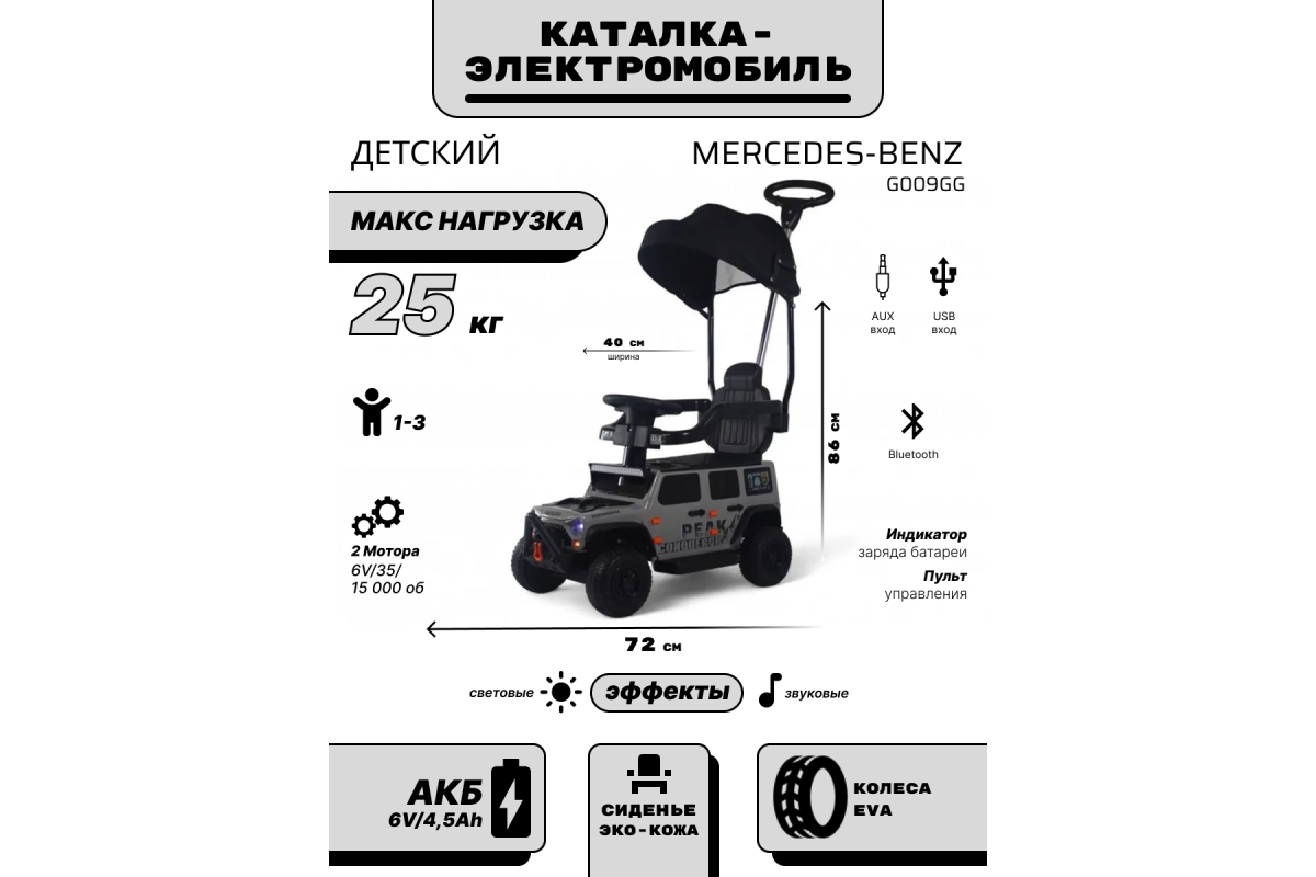 Детский электромобиль G009GG с дистанционным управлением и родительской ручкой