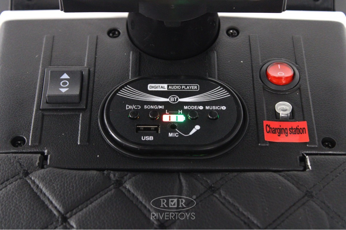 Особенности модели: откидная крыша, принцип чемодана, откидные боковые фиксирующие ручки, AUX вход на меда-панели для подключения к микрофону, мерцающая подсветка на лобовом стекле (работает в сопровождении с музыкой)