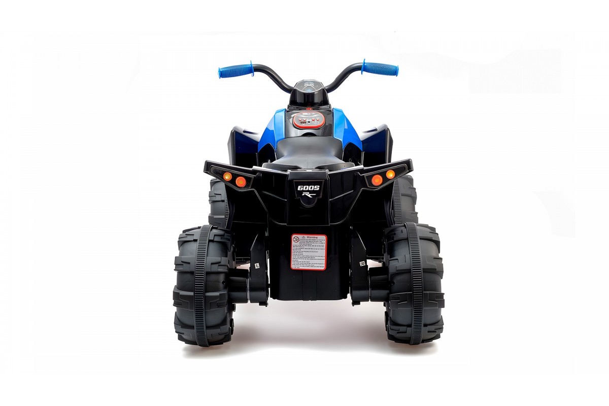 Электроквадроцикл данной модели станет отличным подарком для ребенка от 2 до 4 лет. Он вполне может стать первым транспортным средством для малыша. Максимальная скорость до 5 километров в час не будет слишком высокой для безопасности ребенка и вызовет неописуемый восторг и бурю эмоций. Резиновые колеса способны преодолеть все препятствия во дворе или школьной площадке. Электромобиль прост в управлении, с которым справится ребенок через пару минут езды. Одноместное сидение из эко-кожи сконструировано в соответствии с анатомическими особенностями ребенка. Яркие светодиодные фары позволят использовать квадроциклом в темное время суток.