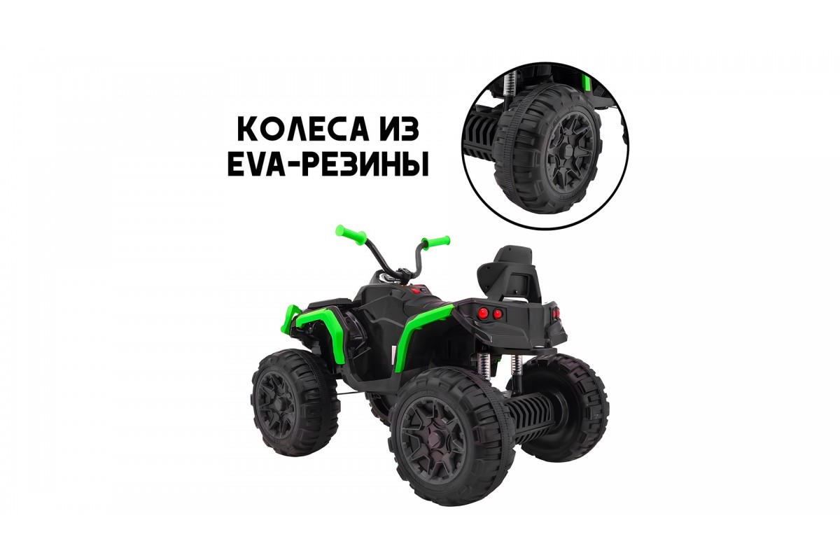 Высокая посадка квадроцикла позволяет ездить даже по неровным поверхностям, преодолевать небольшие препятствия и выходить победителем в любом мини-соревновании.