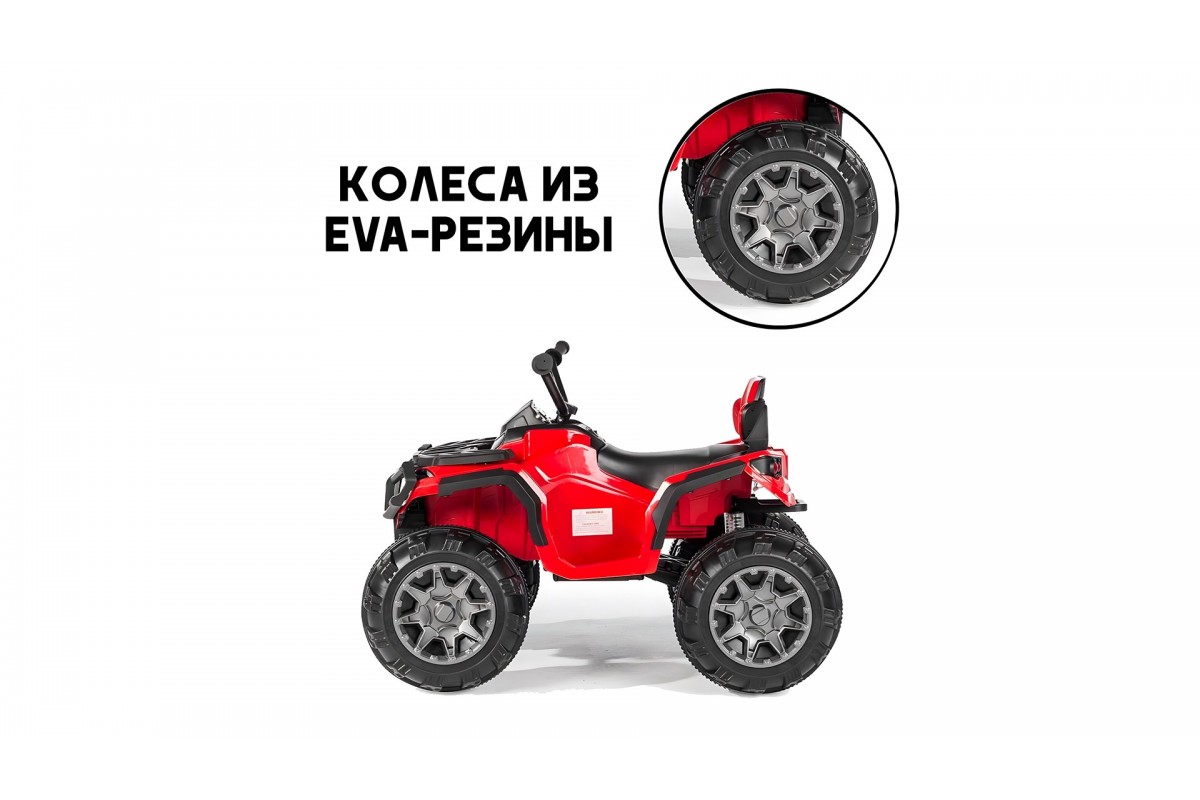 Высокая посадка квадроцикла позволяет ездить даже по неровным поверхностям, преодолевать небольшие препятствия и выходить победителем в любом мини-соревновании.