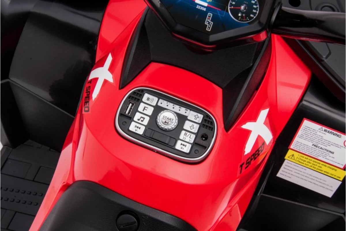 Перед вами стильный полноприводный электроквадроцикл для ваших детей (от трех до семи лет). Модель имеет не только привлекательный дизайн, но так же высокие технические характеристики. Колеса электромобиля выполнены из плотной каучуковой резины и имеют глубокий протектор, что прекрасно подходит для любой поверхности. Задние амортизаторы обеспечивают более плавную езду. Мягкое сиденье, из эко-кожи и спинка позволят кататься долгое время.