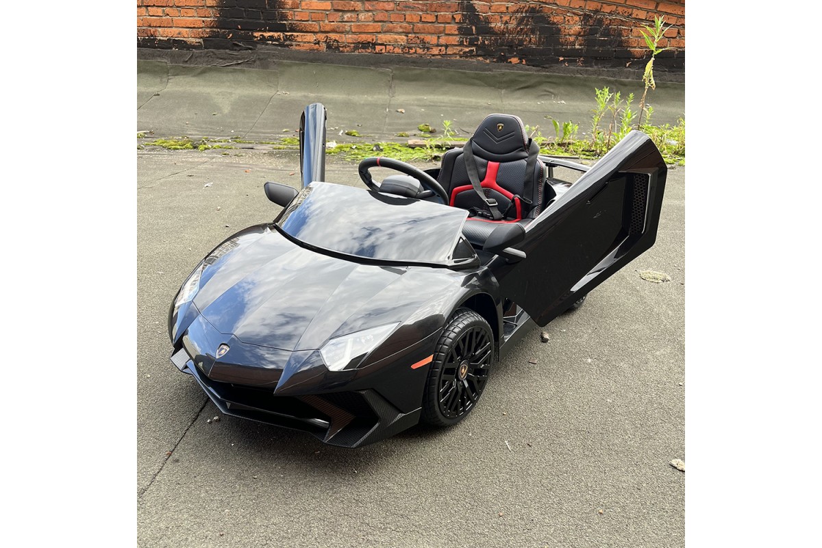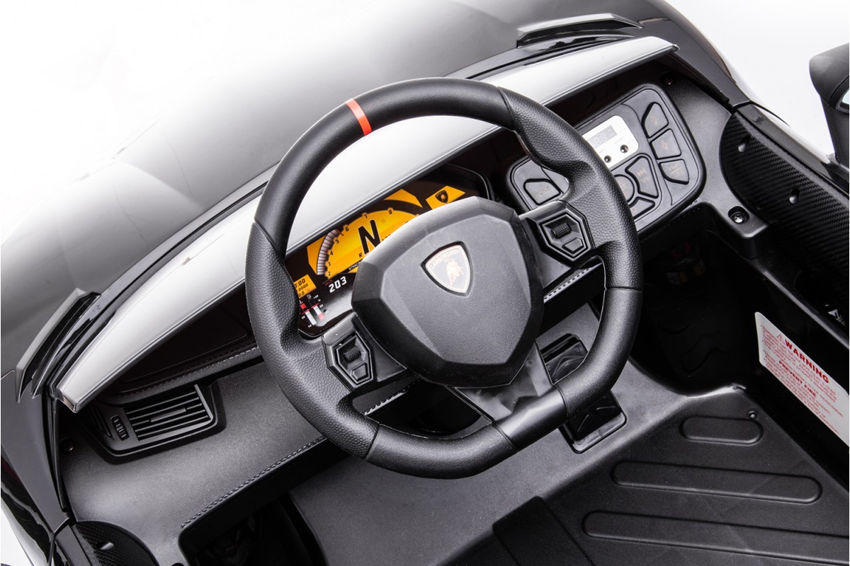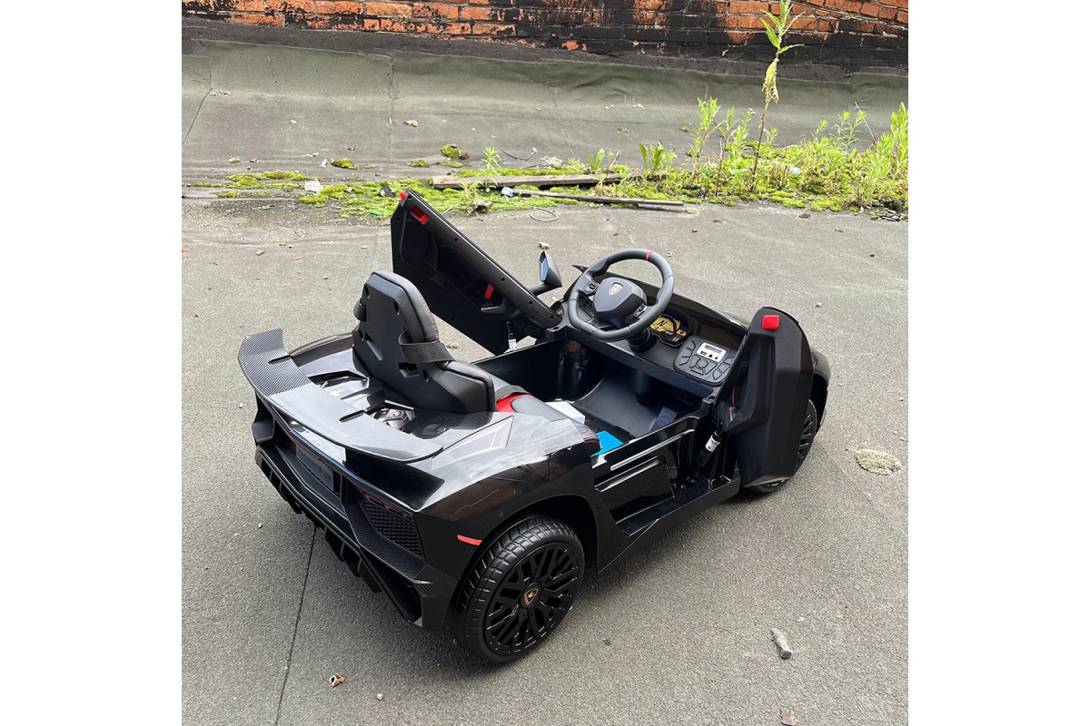 - Корпус электромобиля Lamborghini Aventador SV Roadster выполнен из высококачественного ударопрочного пластика с качественными ставками под карбон.