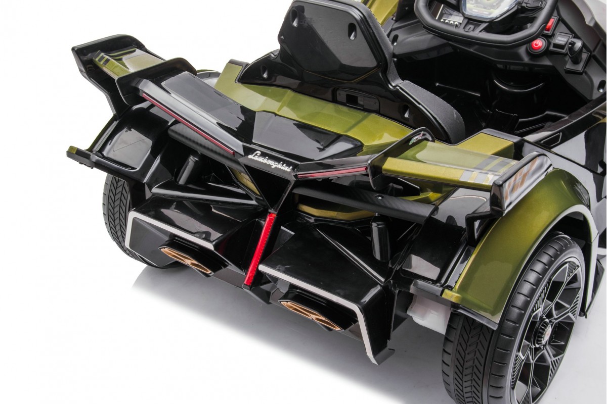 Детский электромобиль Lamborghini V12 Vision Gran Turismo 4WD 12V - HL528-LUX-ARMY-GREEN - это спортивный электромобиль Lamborghini HL528 4WD с футуристичным дизайном станет отличным транспортом для юного гонщика или гонщицы. Стоит отметить, что это одна из немногих одноместных моделей с полным приводом (4WD), поэтому электрокар будет чувствовать себя уверено на любой поверхности (асфальт, гравий, газон, и др.). Удобное кресло из ЭКО кожи, ремень безопасности, резиновые колеса EVA и амортизация (на заднюю ось) делают поездку еще комфортнее.