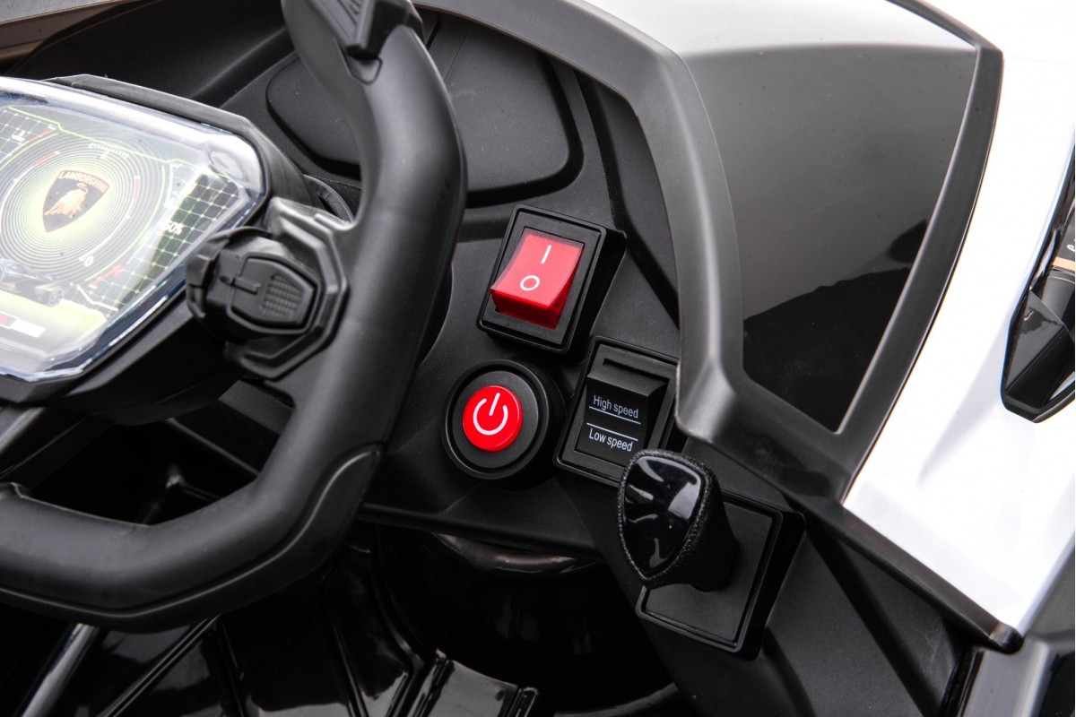 Детский электромобиль Lamborghini V12 Vision Gran Turismo 4WD 12V - HL528-LUX-WHITE - это спортивный электромобиль Lamborghini HL528 4WD с футуристичным дизайном станет отличным транспортом для юного гонщика или гонщицы. Стоит отметить, что это одна из немногих одноместных моделей с полным приводом (4WD), поэтому электрокар будет чувствовать себя уверено на любой поверхности (асфальт, гравий, газон, и др.). Удобное кресло из ЭКО кожи, ремень безопасности, резиновые колеса EVA и амортизация (на заднюю ось) делают поездку еще комфортнее.