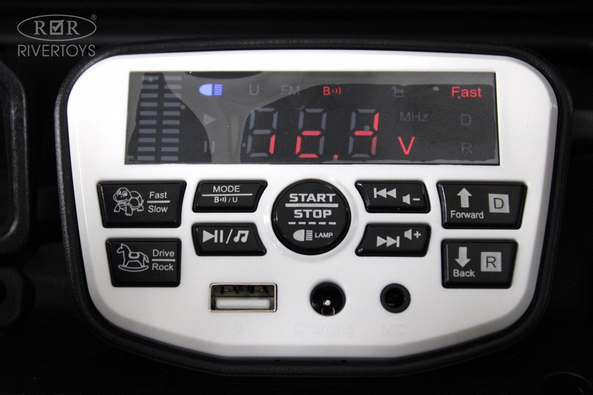 - Особенности модели:открываются двери, электроусилитель руля, принцип-качалки, принцип-чемодана (ручка сзади), встроенные редуктора в колесах, педаль тормоза, металлическая рама, открывается капот
