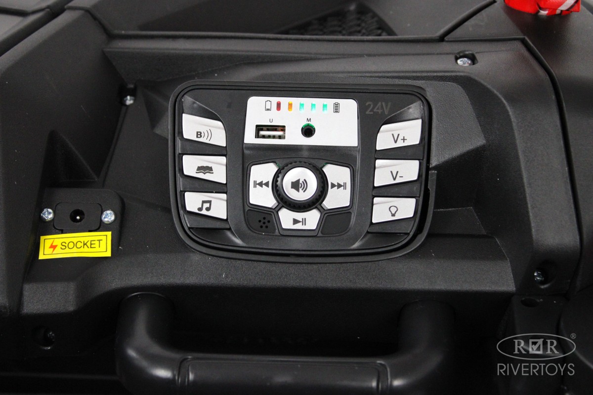 - Особенности модели:Медиа-панель: USB-вход, mp3-вход, индикатор заряда батареи, Bluetooh. Редуктор: двигатель 180w (на задние колеса), задние дисковые тормоза