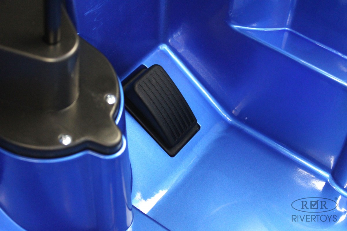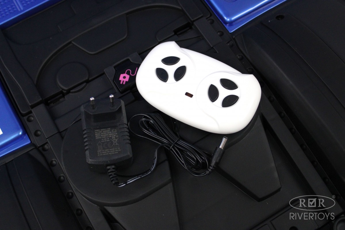 Электромобиль имеет полный привод и 2 аккумулятора по 12V/7АН. Он управляется пультом ДУ, работающим по Bluetooth на расстоянии до 60 метров. В салоне установлено мягкое кожаное кресло с полосным ремнем безопасности. На медиа-панели расположены разъемы USB и microSD. Размеры машинки в собранном виде составляют 125x68x103, а вес – 26 кг.