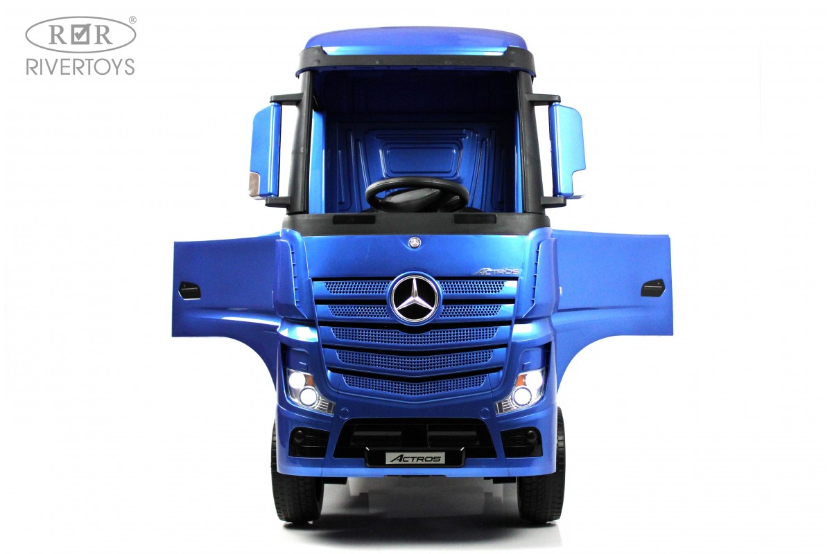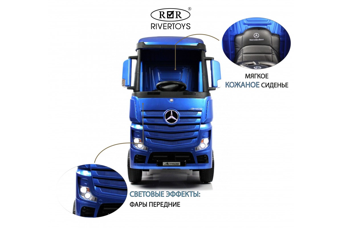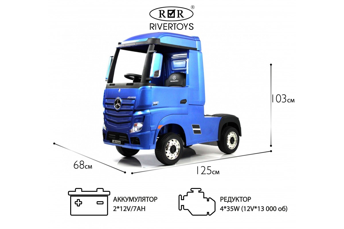 RiverToys Mercedes-Benz Actros HL358 (ЛИЦЕНЗИОННАЯ МОДЕЛЬ) – это единственный в своем роде электромобиль-фура, поражающий своим дизайнерским исполнением и габаритами. Машина оснащена передними и задними амортизаторами, предотвращающими тряску на кочках. На дверях установлены защелки, предотвращающие случайное открывание дверей.