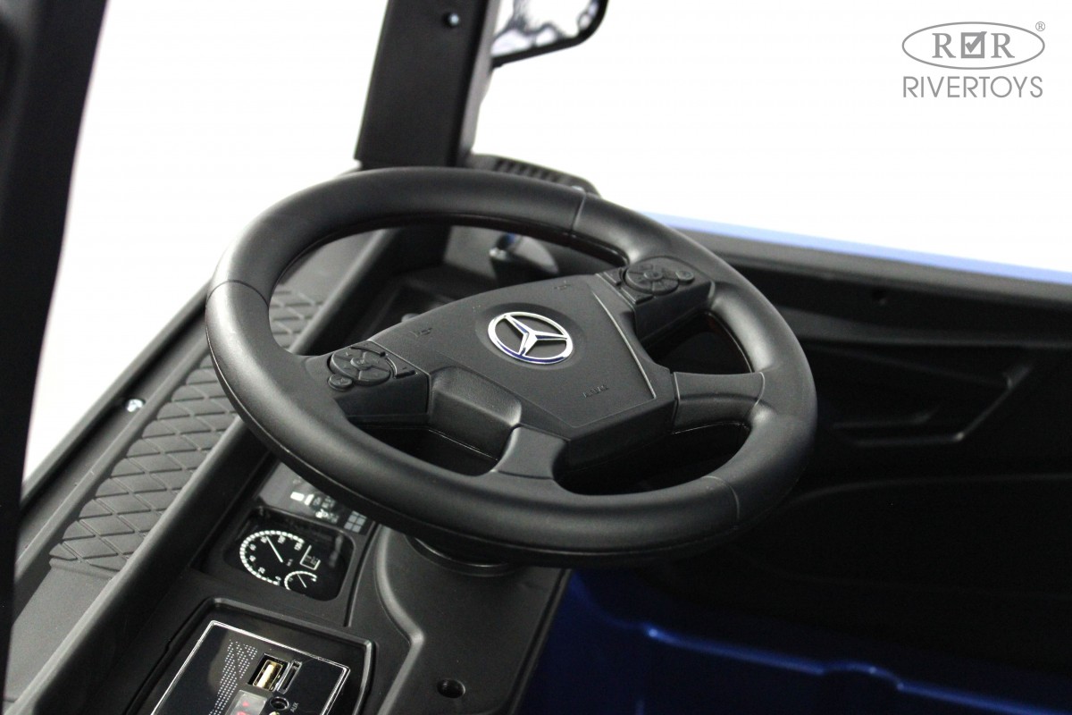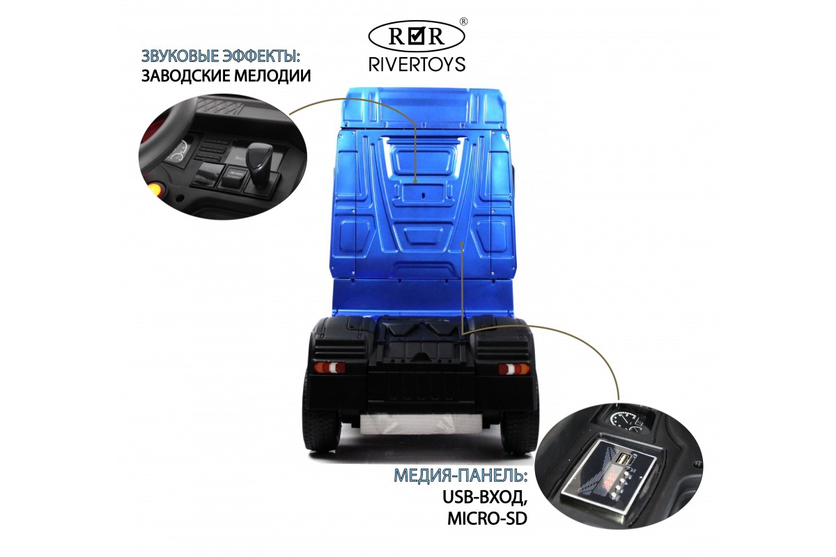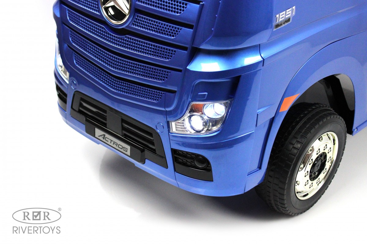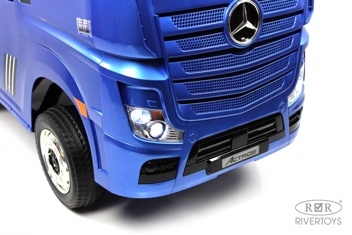 RiverToys Mercedes-Benz Actros HL358 (ЛИЦЕНЗИОННАЯ МОДЕЛЬ) – это единственный в своем роде электромобиль-фура, поражающий своим дизайнерским исполнением и габаритами. Машина оснащена передними и задними амортизаторами, предотвращающими тряску на кочках. На дверях установлены защелки, предотвращающие случайное открывание дверей.