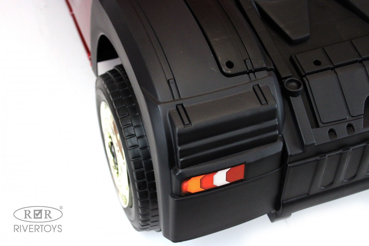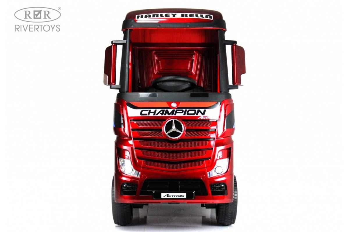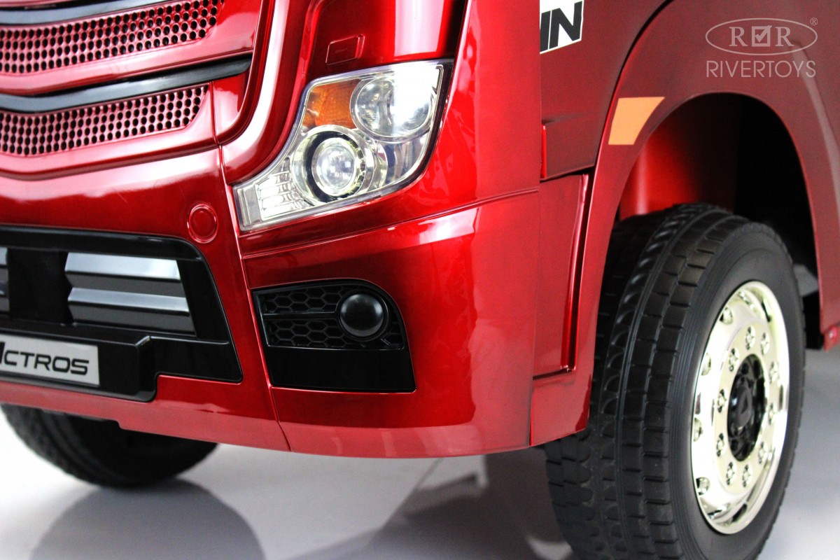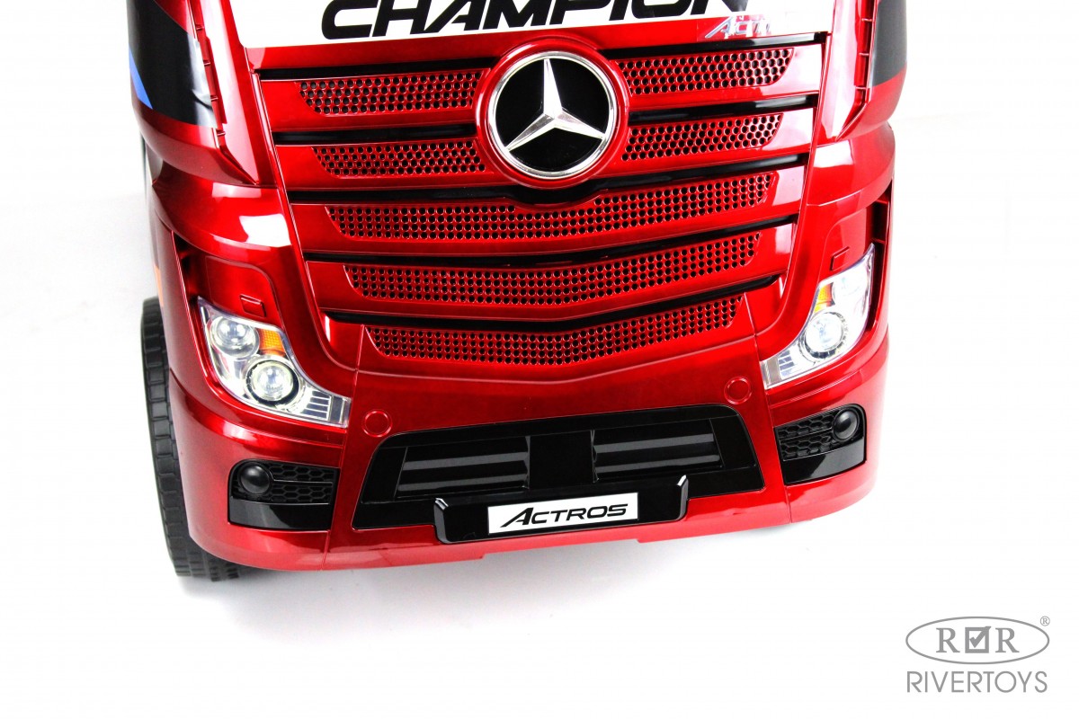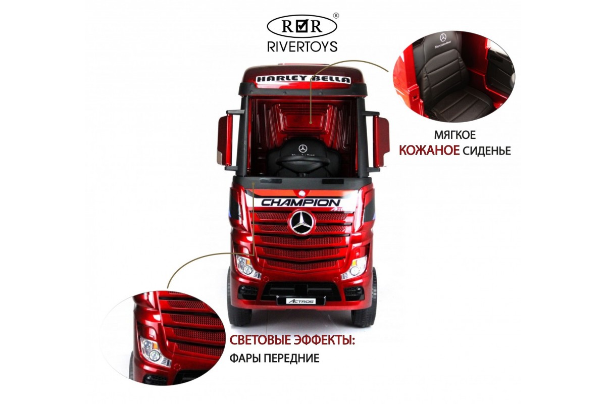 RiverToys Mercedes-Benz Actros HL358 (ЛИЦЕНЗИОННАЯ МОДЕЛЬ) – это единственный в своем роде электромобиль-фура, поражающий своим дизайнерским исполнением и габаритами. Машина оснащена передними и задними амортизаторами, предотвращающими тряску на кочках. На дверях установлены защелки, предотвращающие случайное открывание дверей.