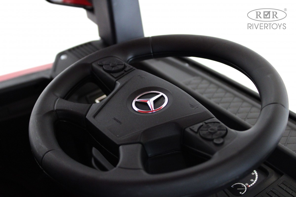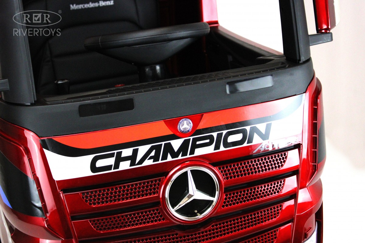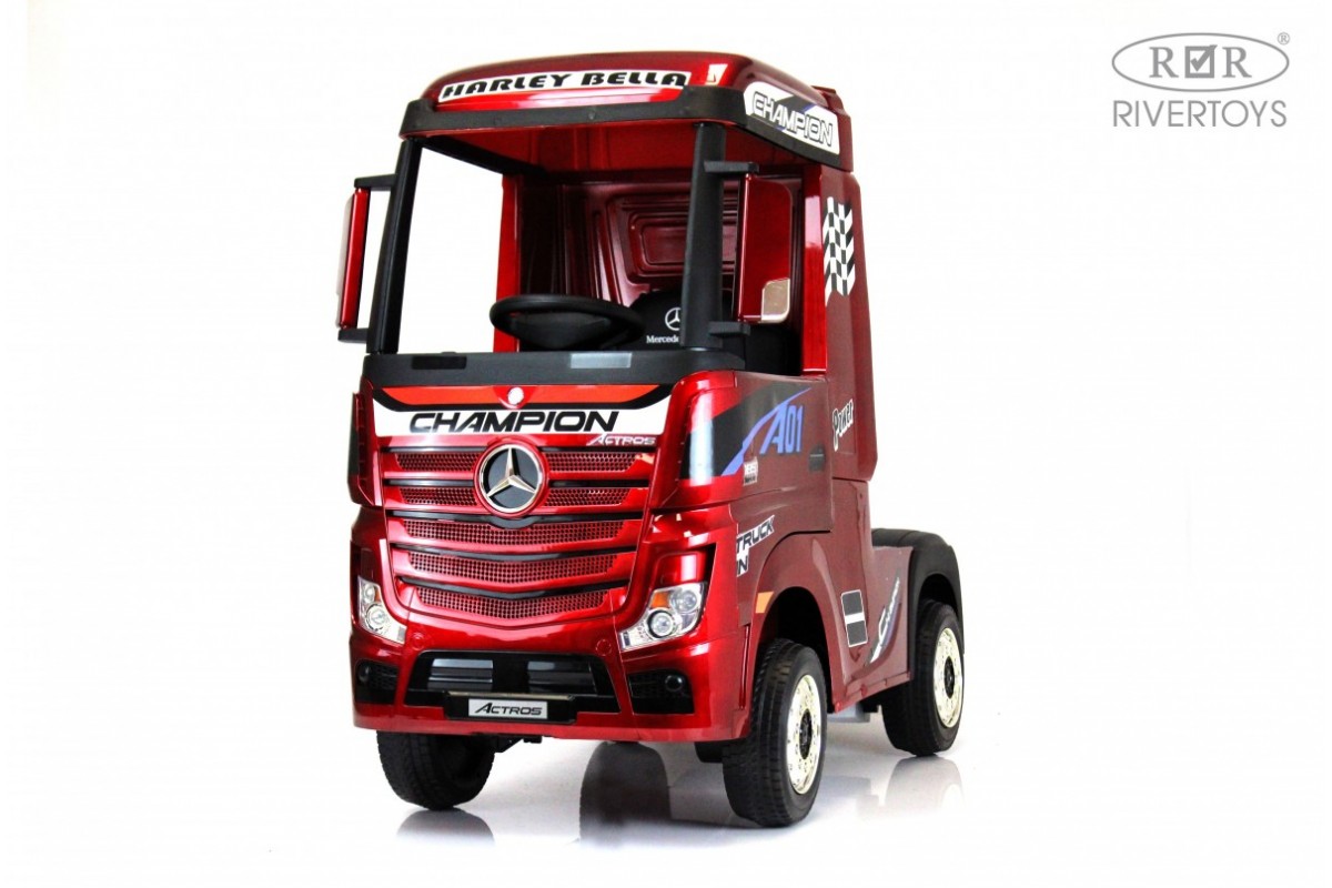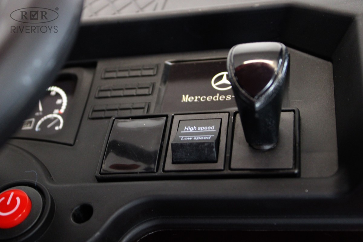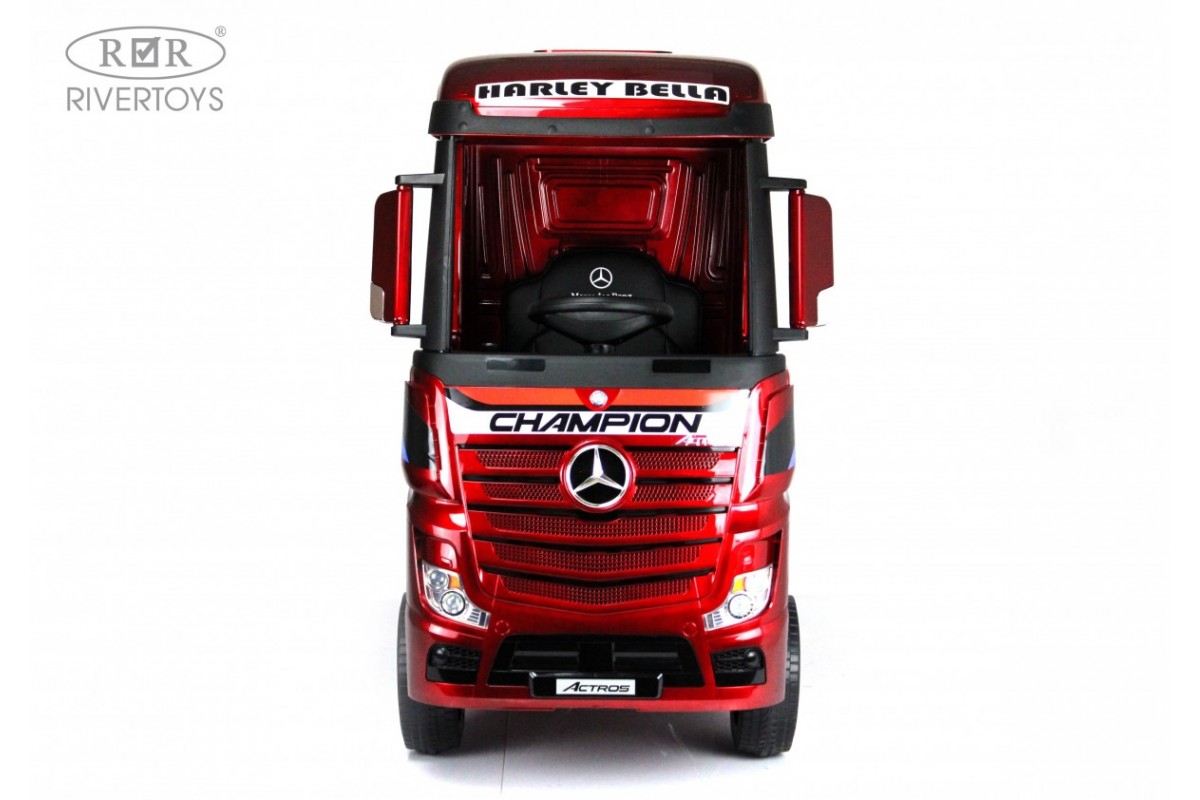 RiverToys Mercedes-Benz Actros HL358 (ЛИЦЕНЗИОННАЯ МОДЕЛЬ) – это единственный в своем роде электромобиль-фура, поражающий своим дизайнерским исполнением и габаритами. Машина оснащена передними и задними амортизаторами, предотвращающими тряску на кочках. На дверях установлены защелки, предотвращающие случайное открывание дверей.