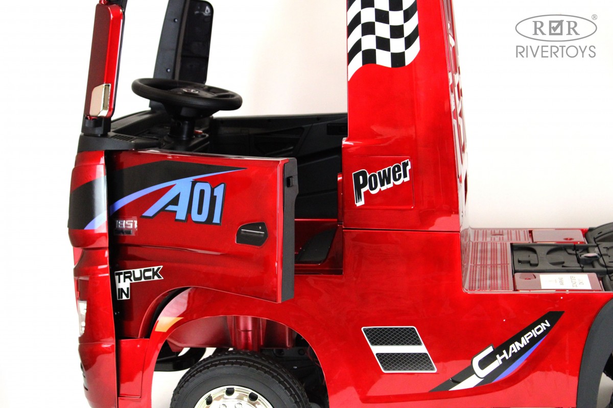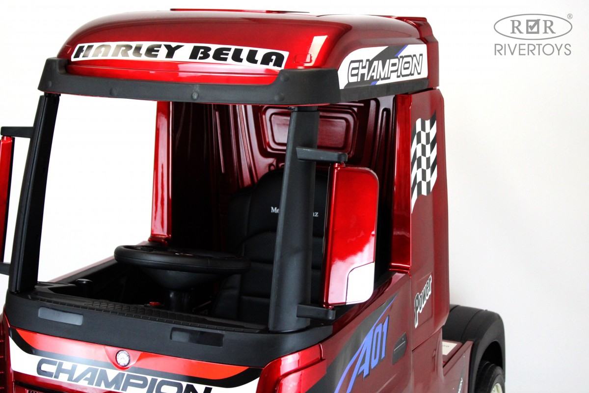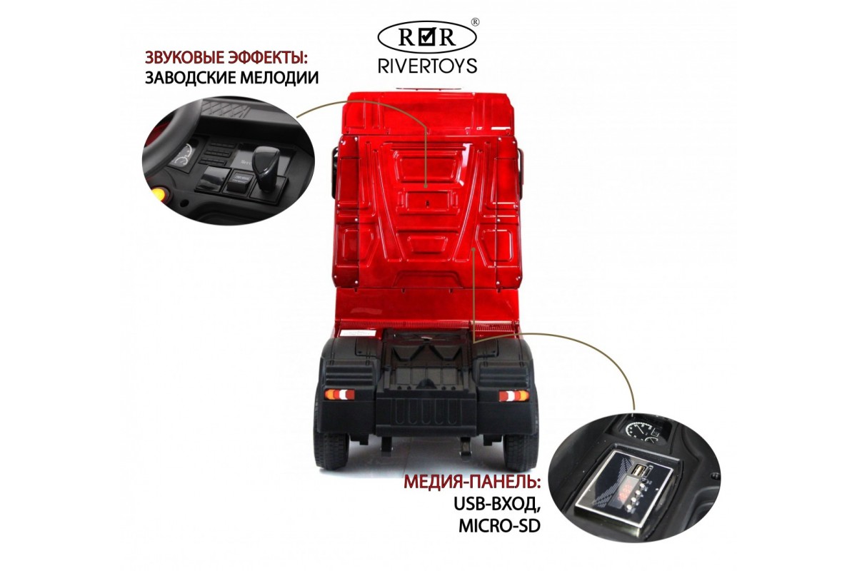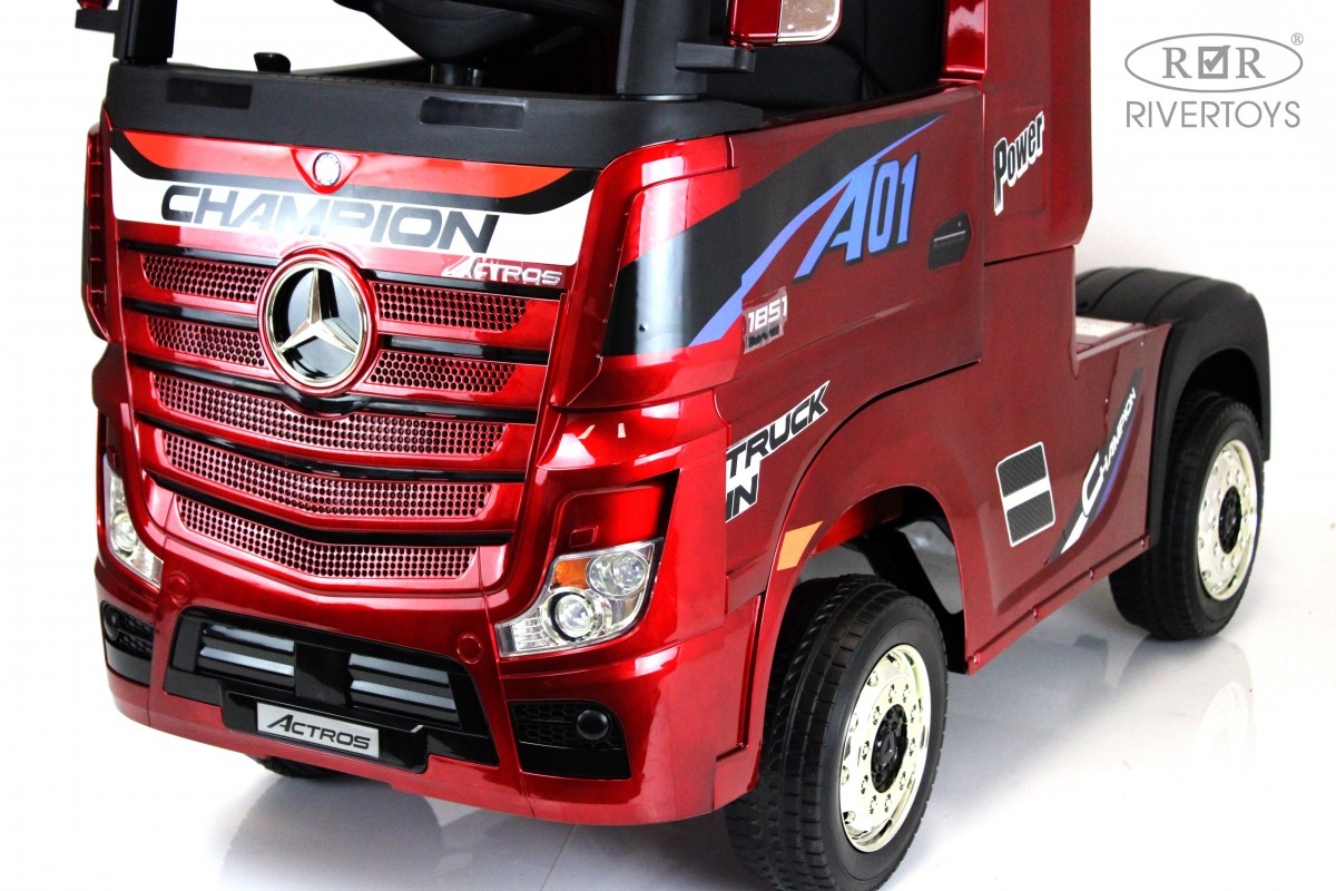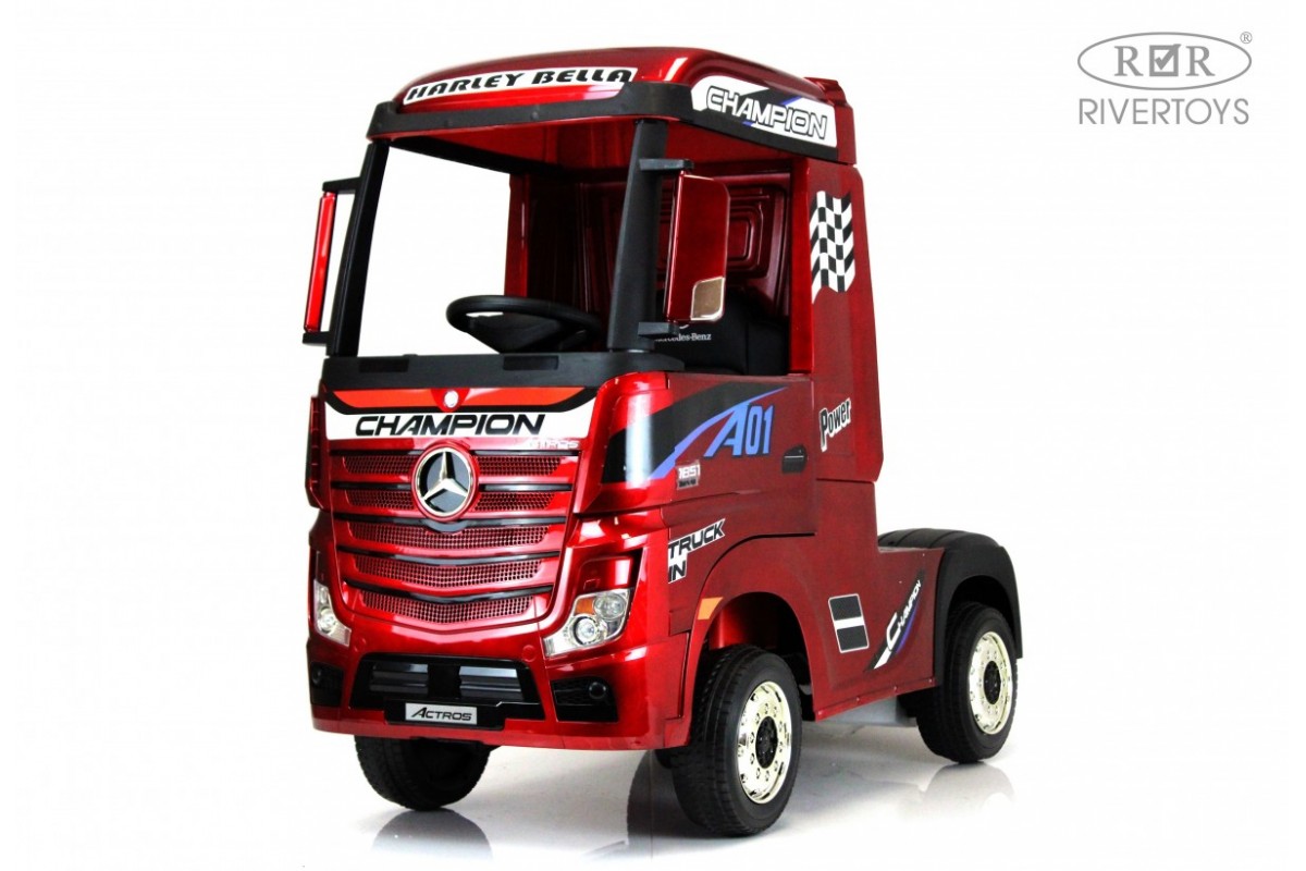 RiverToys Mercedes-Benz Actros HL358 (ЛИЦЕНЗИОННАЯ МОДЕЛЬ) – это единственный в своем роде электромобиль-фура, поражающий своим дизайнерским исполнением и габаритами. Машина оснащена передними и задними амортизаторами, предотвращающими тряску на кочках. На дверях установлены защелки, предотвращающие случайное открывание дверей.