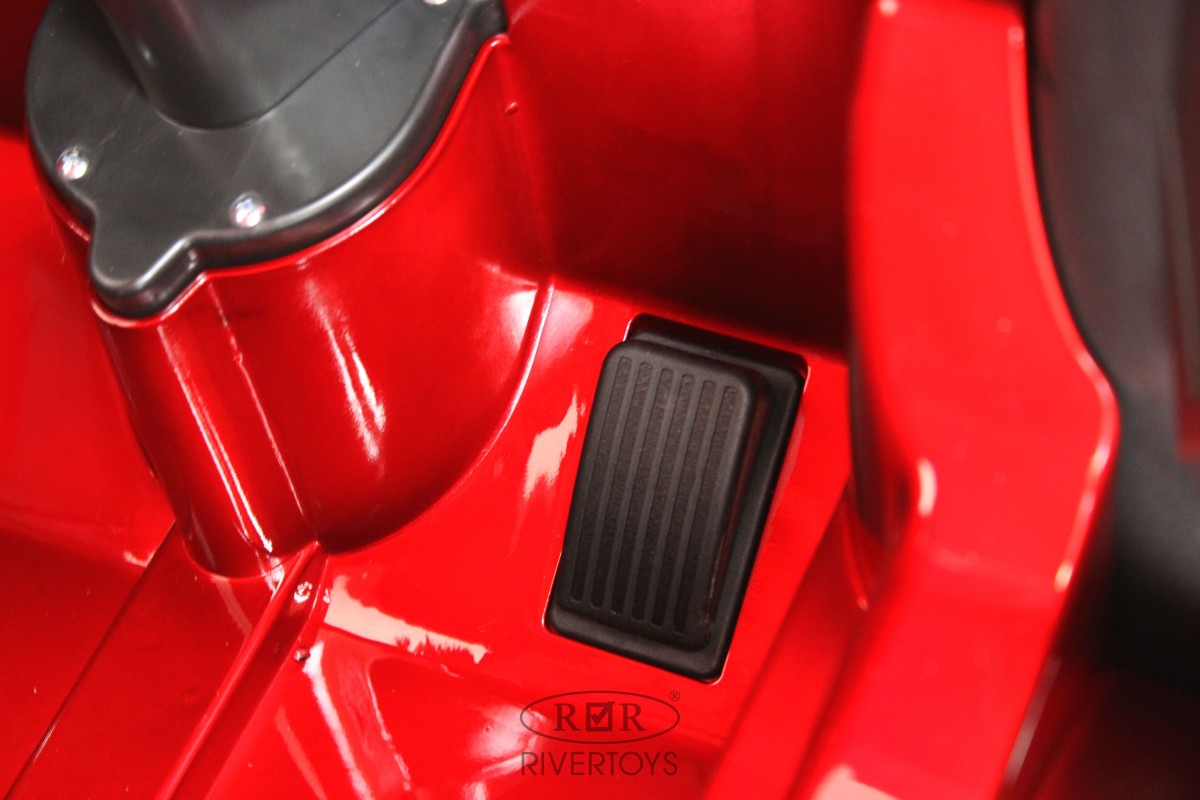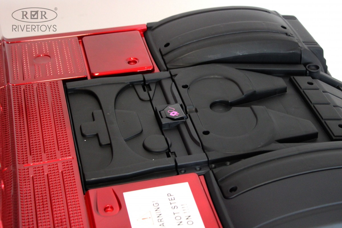 Электромобиль имеет полный привод и 2 аккумулятора по 12V/7АН. Он управляется пультом ДУ, работающим по Bluetooth на расстоянии до 60 метров. В салоне установлено мягкое кожаное кресло с полосным ремнем безопасности. На медиа-панели расположены разъемы USB и microSD. Размеры машинки в собранном виде составляют 125x68x103, а вес – 26 кг.