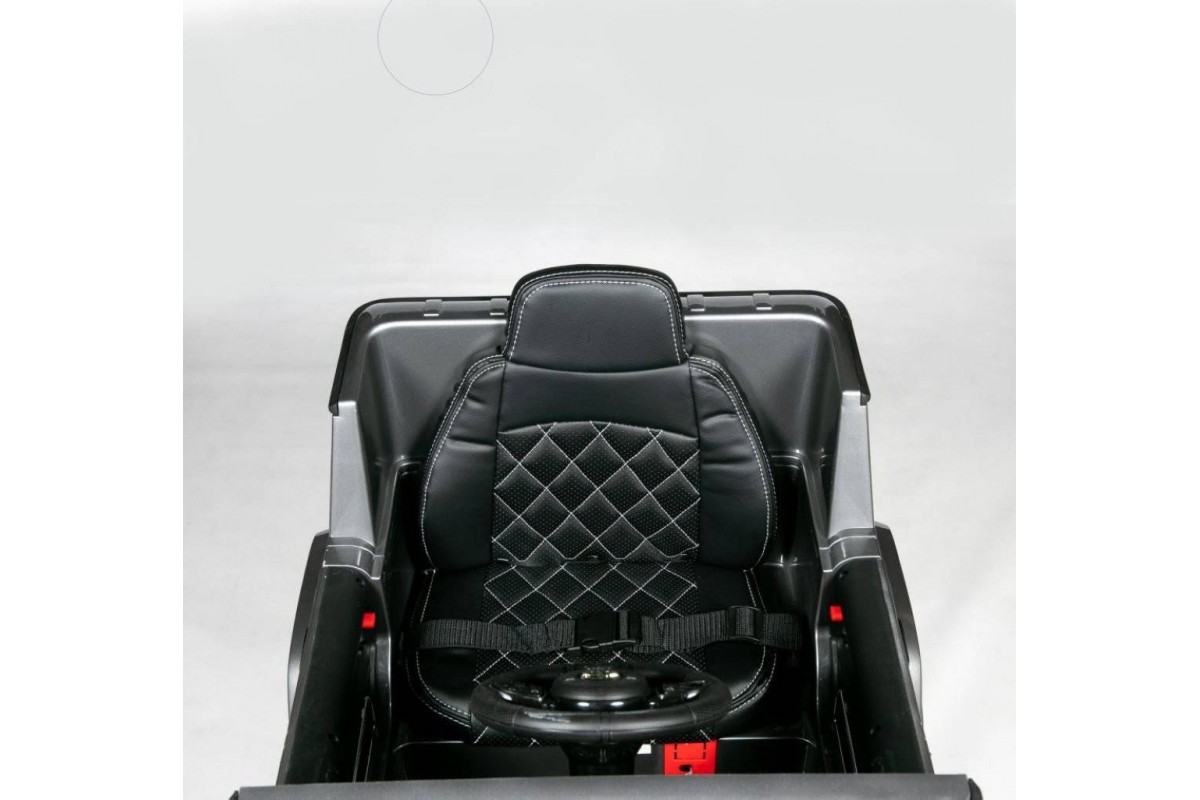 Дверцы автомобиля оборудованы окнами и замками, легко открываются и закрываются, поэтому ребенок может садиться и выходить из салона самостоятельно. Высокие борта и прочный ремень безопасности предохраняют маленького водителя от выпадения из машины и других травм. Водительское кресло из эко-кожи имеет эргономичную форму. Сиденье и спинка образуют единое целое, что гарантирует анатомически правильное положение тела ребенка и избавляет от дискомфорта даже во время длительной поездки.