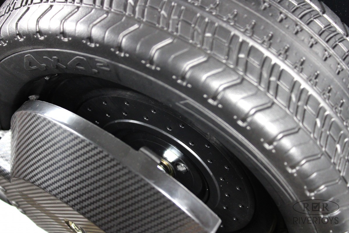 Амортизаторы установлены на передних и задних колесах, что обеспечивает комфортное и безопасное катание. Колеса выполнены из каучука, а в комплекте идет запасное колесо. Скорость движения вперед и назад регулируется быстро и медленно, достигая 5-8 км/ч.