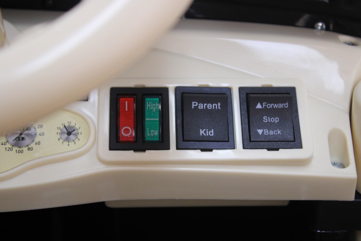 Скорость: до 7км/ч , скорость вперед/назад, высокая/низкая (кнопка газа на руле)